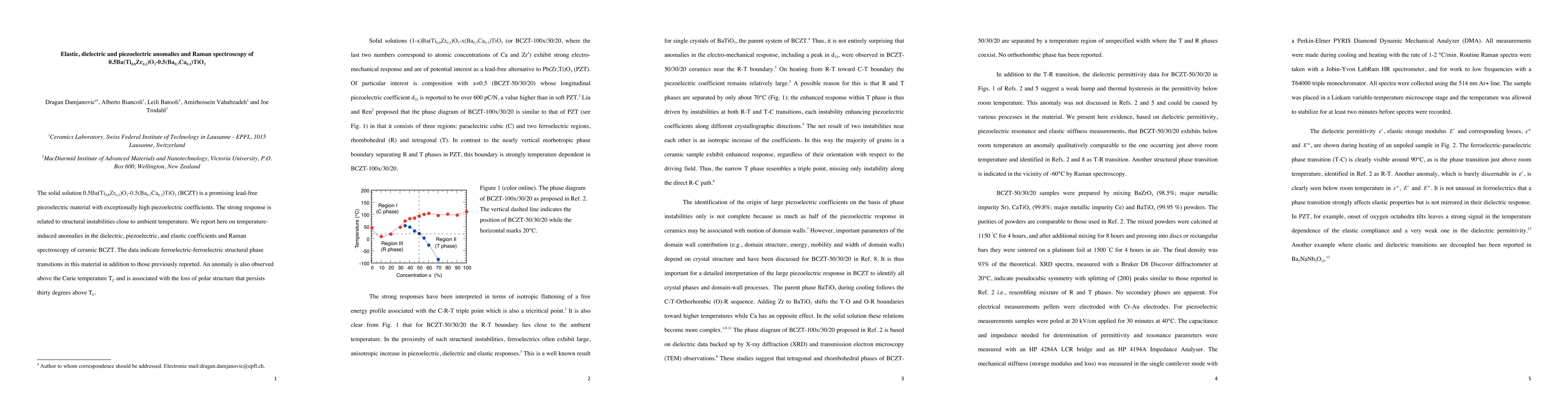Researchers investigate temperature-induced anomalies in lead-free piezoelectric material BCZT, revealing additional ferroelectric-ferroelectric structural phase transitions above the Curie temperature.
