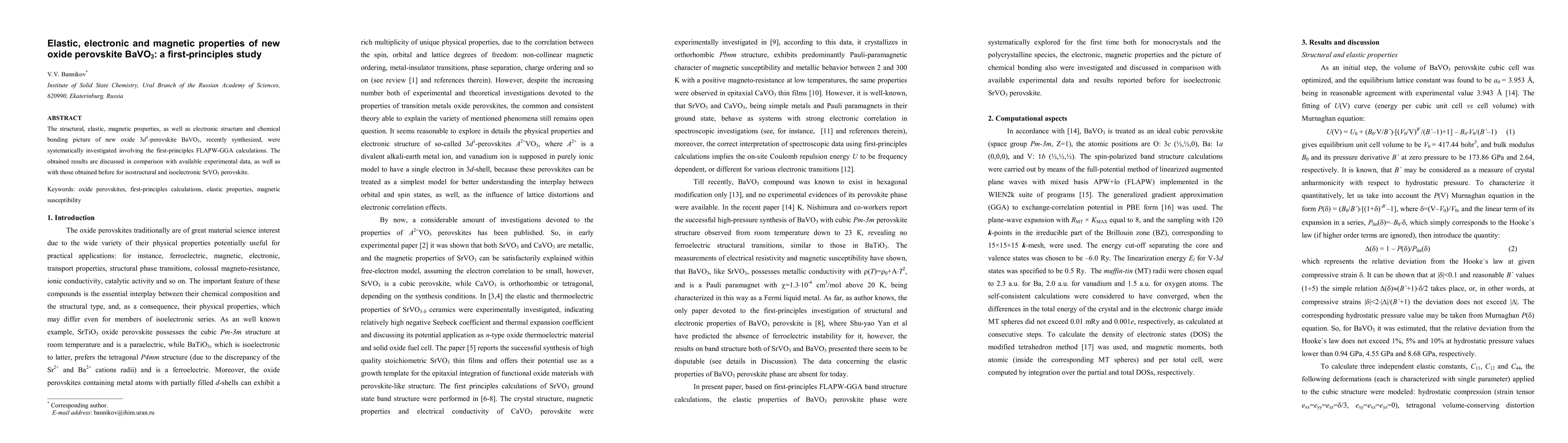 This study uses first-principles calculations to investigate the structural, elastic, electronic, and magnetic properties of the newly synthesized BaVO3 perovskite, comparing its characteristics with those of the isostructural SrVO3. The findings provide insights into the material's potential applications based on its theoretical properties.