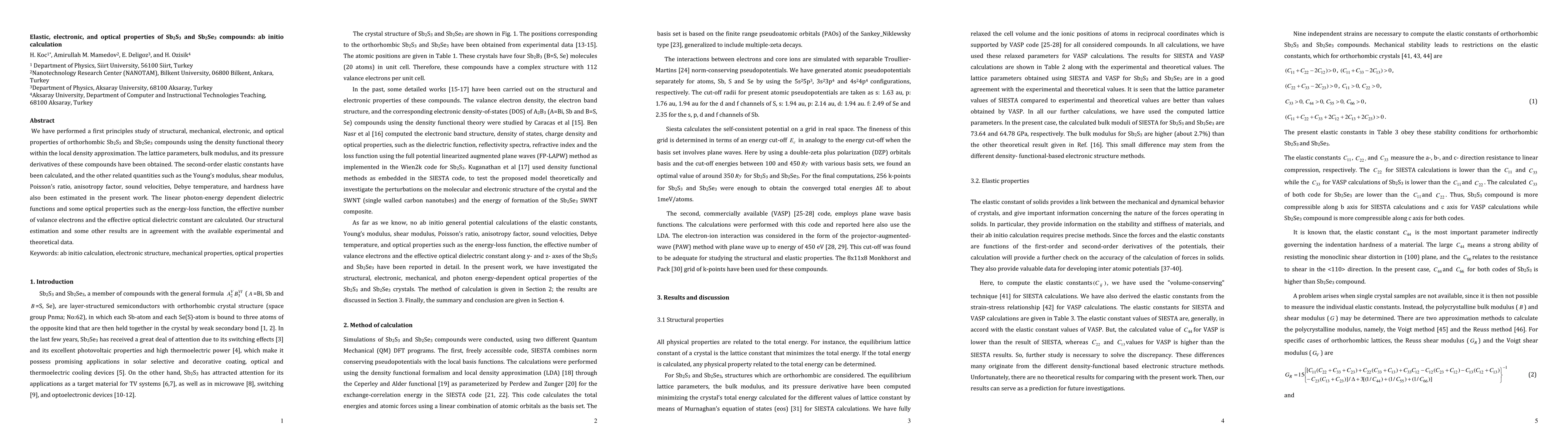 This study uses density functional theory to investigate the structural, mechanical, electronic, and optical properties of orthorhombic Sb2S3 and Sb2Se3 compounds. The research calculates lattice parameters, elastic constants, and optical properties, finding results consistent with existing experimental and theoretical data.