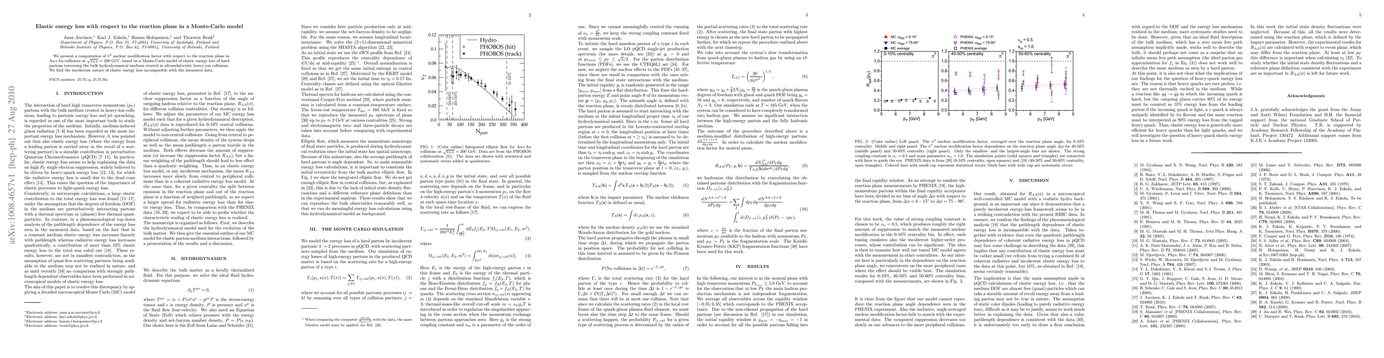 Summary: This study computes the $\pi^0$ nuclear modification factor relative to the reaction plane in Au+Au collisions using a Monte-Carlo model, finding that the incoherent nature of elastic energy loss does not align with experimental data.
