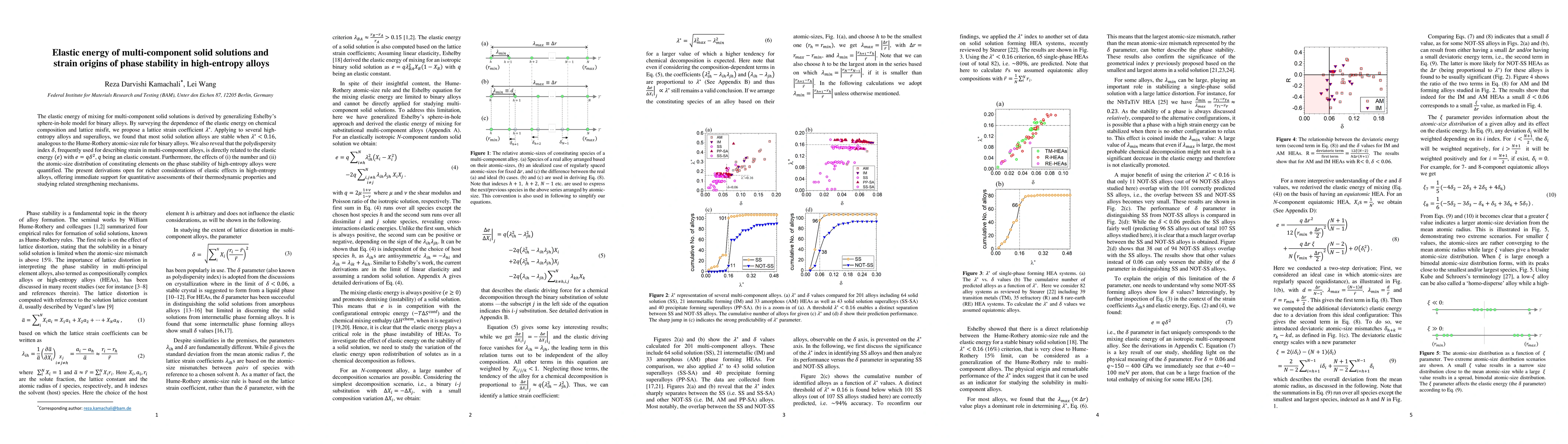 This paper derives the elastic energy of multi-component solid solutions using a generalized Eshelby model, proposing a lattice strain coefficient λ* for phase stability in high-entropy alloys. It shows that stability is achieved when λ*<0.16, correlating the polydispersity index δ directly to elastic energy.