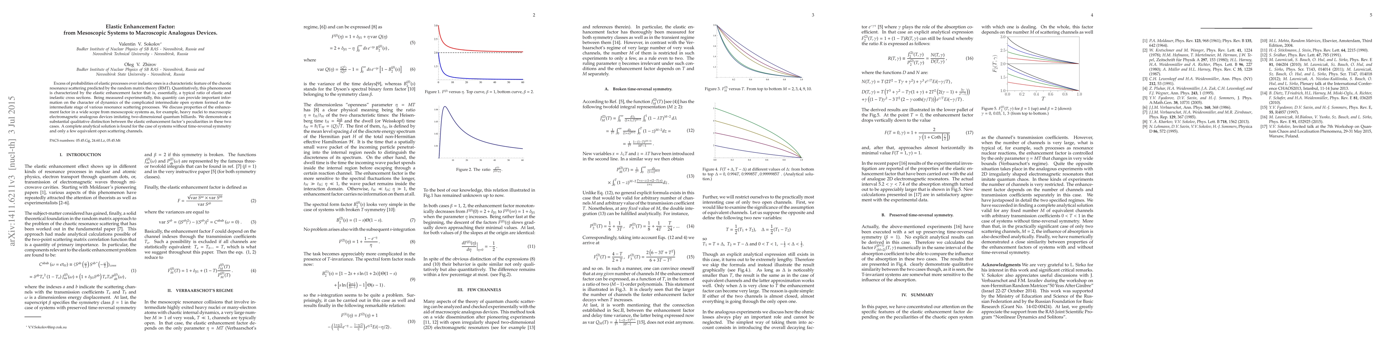 This paper investigates the elastic enhancement factor $F^{(\beta)}$ in chaotic resonance scattering, comparing its properties in mesoscopic systems like heavy nuclei to macroscopic electromagnetic devices. It finds significant qualitative differences between these systems and provides a complete analytical solution for systems lacking time-reversal symmetry.