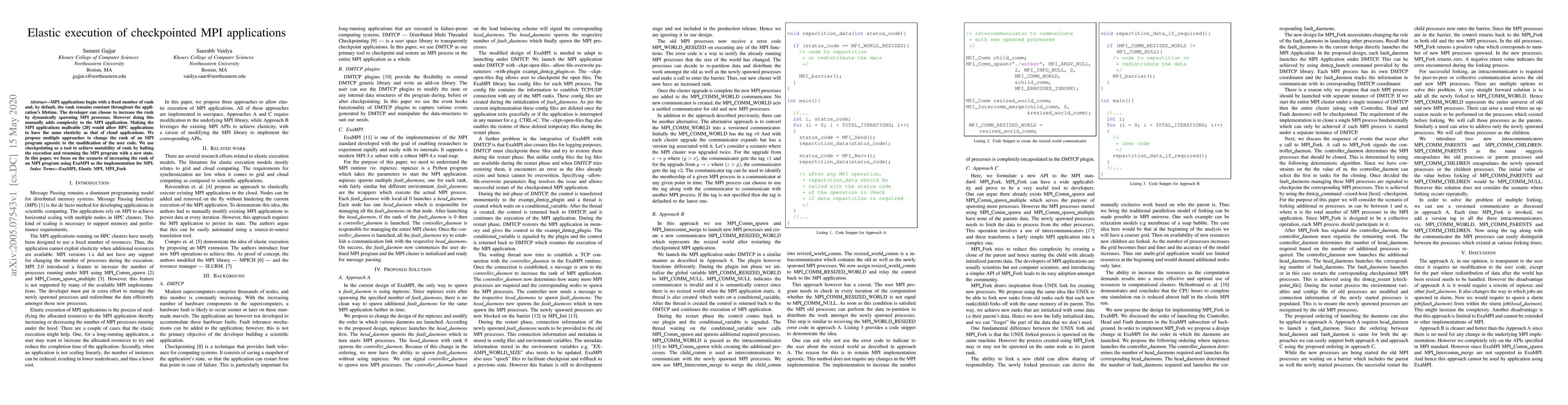 This research proposes methods to make MPI applications elastic by dynamically changing their rank, focusing on increasing rank using checkpointing. It demonstrates this with ExaMPI as the MPI implementation, aiming to bring HPC application flexibility similar to cloud applications.