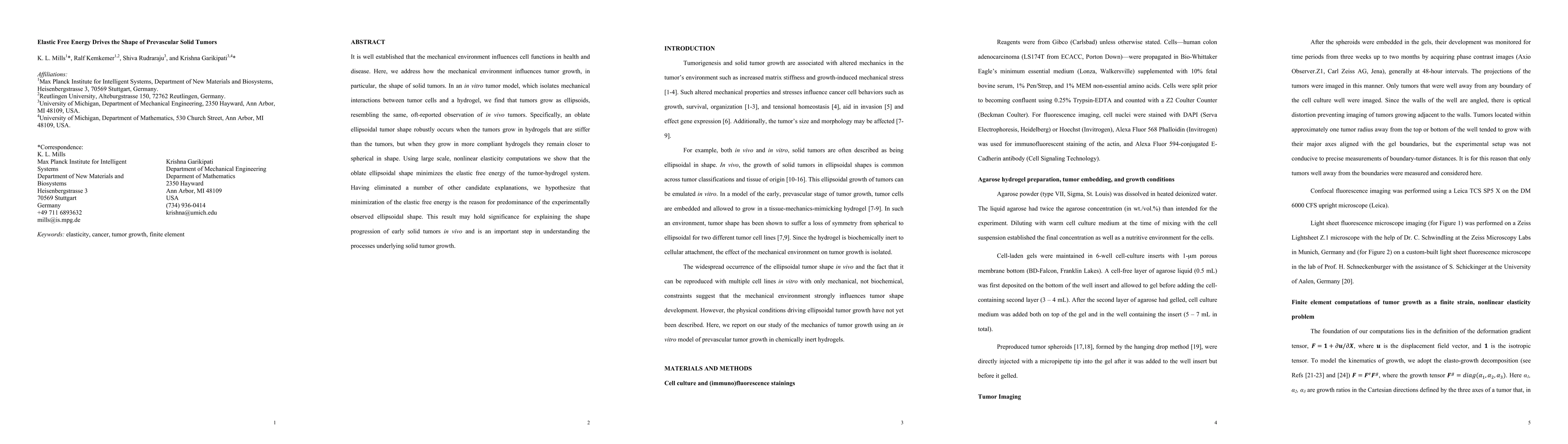 This study demonstrates that the mechanical environment significantly influences the shape of solid tumors, with stiffer hydrogels promoting oblate ellipsoidal growth, while more compliant hydrogels maintain spherical shapes. The researchers hypothesize that the oblate ellipsoidal shape minimizes the elastic free energy of the tumor-hydrogel system, providing a key insight into the processes underlying early solid tumor growth.