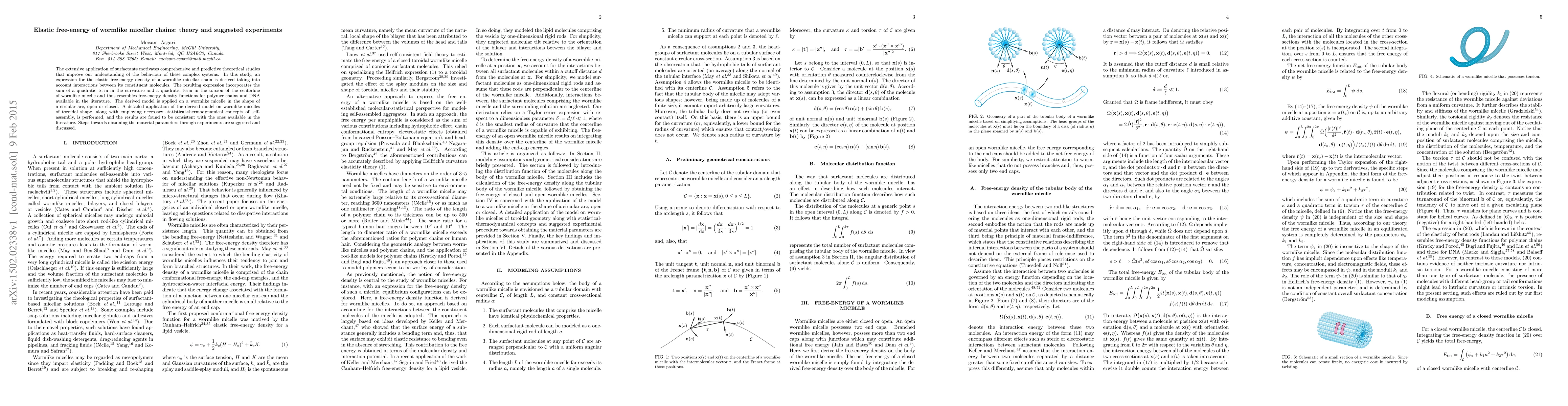 This paper derives a theoretical expression for the elastic free-energy density of wormlike micellar chains, incorporating curvature and torsion effects. It applies the model to various micelle shapes and suggests experimental methods to determine material parameters.