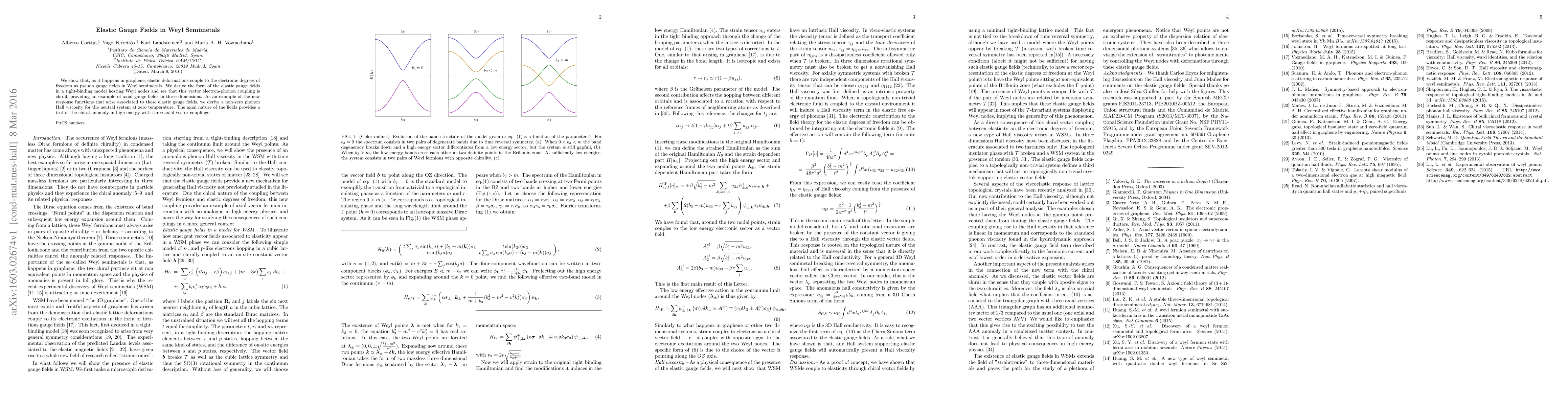 We show that, as it happens in graphene, elastic deformations couple to the electronic degrees of freedom as pseudo gauge fields in Weyl semimetals. We derive the form of the elastic gauge fields in a tight-binding model hosting Weyl nodes and see that this vector electron-phonon coupling is chiral, providing an example of axial gauge fields in three dimensions. As an example of the new response functions that arise associated to these elastic gauge fields, we derive a non-zero phonon Hall viscosity for the neutral system at zero temperature. The axial nature of the fields provides a test of the chiral anomaly in high energy with three axial vector couplings.