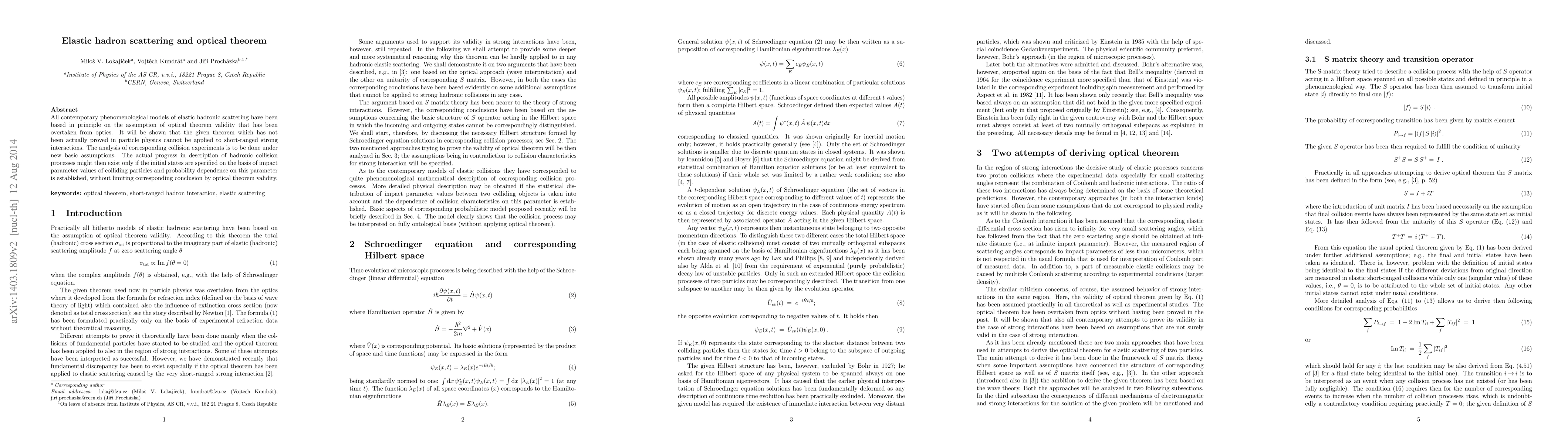 All contemporary phenomenological models of elastic hadronic scattering have been based in principle on the assumption of optical theorem validity that has been overtaken from optics. It will be shown that the given theorem which has not been actually proved in particle physics cannot be applied to short-ranged strong interactions. The analysis of corresponding collision experiments is to be done under new basic assumptions. The actual progress in description of hadronic collision processes might then exist only if the initial states are specified on the basis of impact parameter values of colliding particles and probability dependence on this parameter is established, without limiting corresponding conclusion by optical theorem validity.