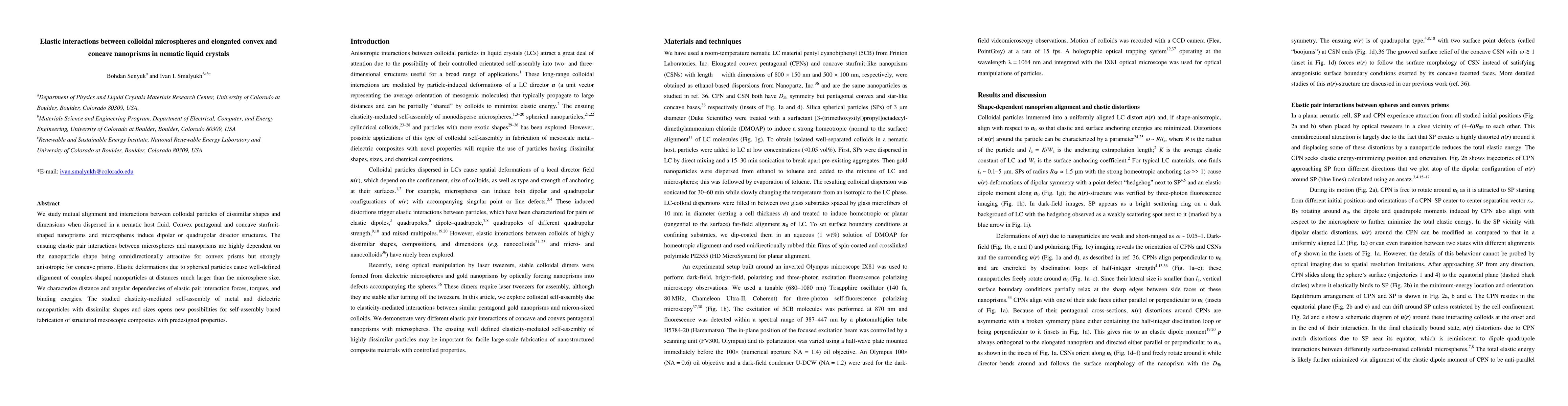 Researchers study interactions between colloidal particles of different shapes in nematic liquid crystals, finding that certain shapes can induce alignment and self-assembly at large distances. This discovery opens possibilities for creating structured composites with tailored properties.