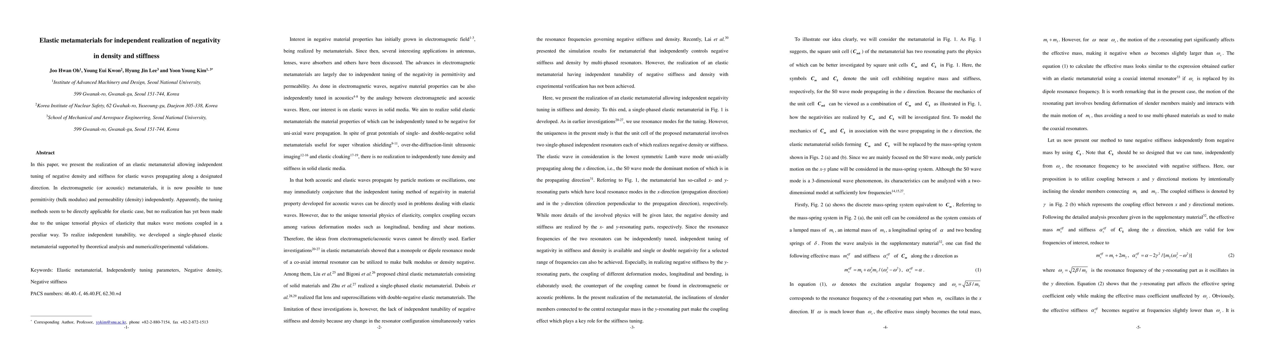 This paper introduces an elastic metamaterial that enables independent tuning of negative density and stiffness for elastic waves, overcoming the unique tensorial physics of elasticity. The developed single-phased metamaterial is validated through theoretical analysis and both numerical and experimental methods.