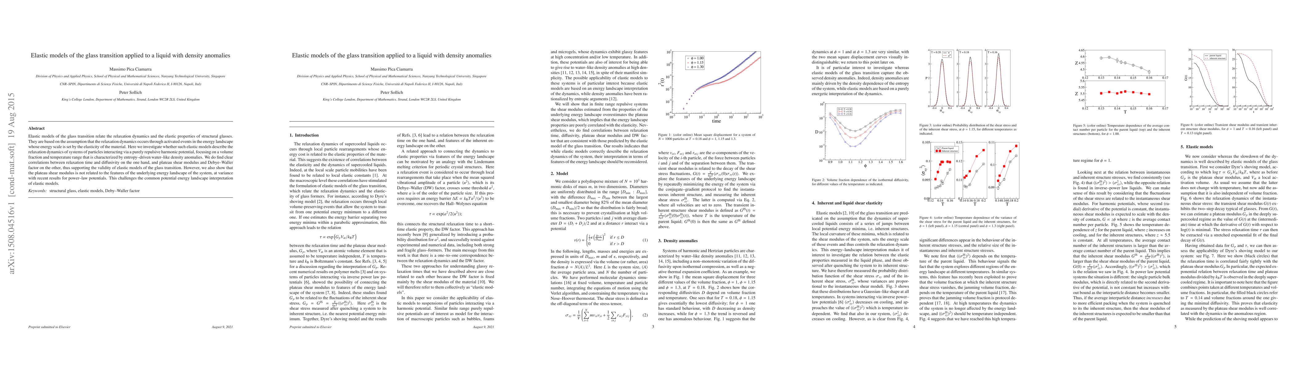 This paper investigates elastic models of the glass transition in systems with density anomalies, finding correlations between relaxation dynamics and elastic properties, but notes that the plateau shear modulus does not correlate with the energy landscape, challenging conventional interpretations.