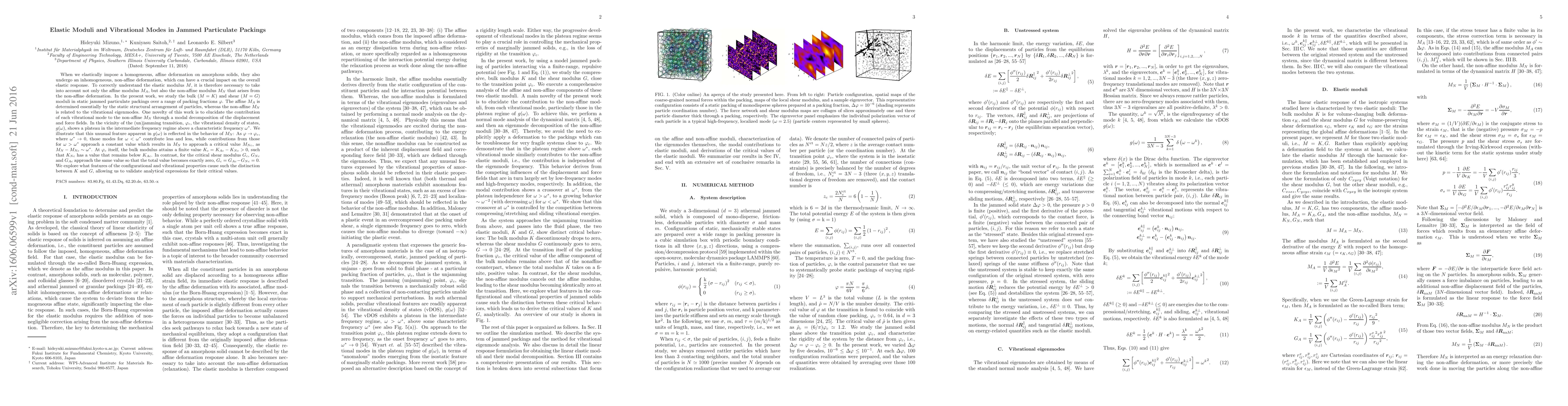 Researchers studied elastic moduli in jammed particulate packings, finding that bulk modulus approaches a non-zero critical value while shear modulus approaches zero at the point of unjamming.