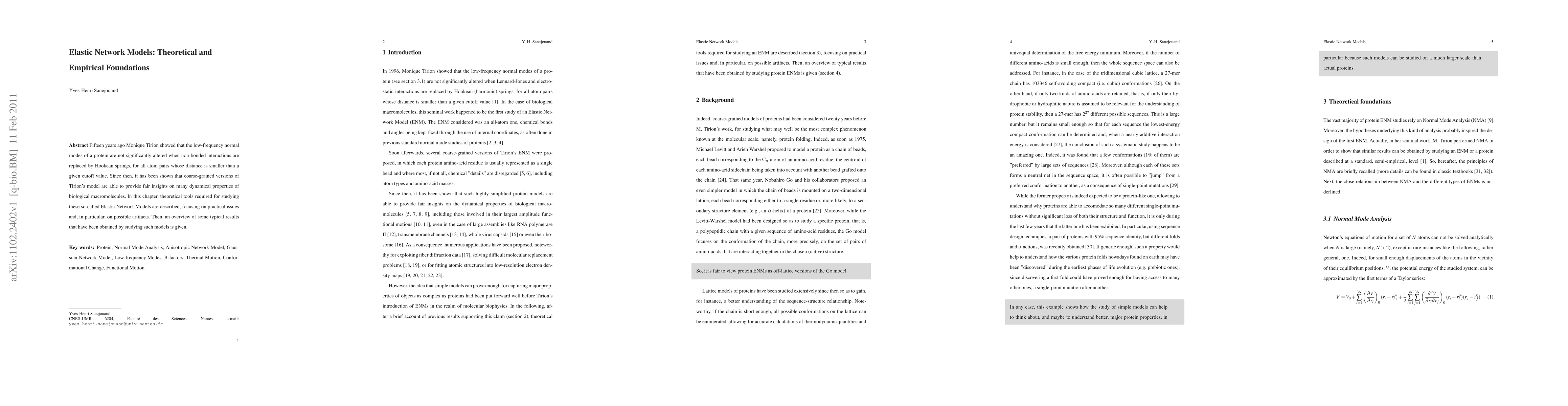 Fifteen years ago Monique Tirion showed that the low-frequency normal modes of a protein are not significantly altered when non-bonded interactions are replaced by Hookean springs, for all atom pairs whose distance is smaller than a given cutoff value. Since then, it has been shown that coarse-grained versions of Tirion's model are able to provide fair insights on many dynamical properties of biological macromolecules. In this text, theoretical tools required for studying these so-called Elastic Network Models are described, focusing on practical issues and, in particular, on possible artifacts. Then, an overview of some typical results that have been obtained by studying such models is given.