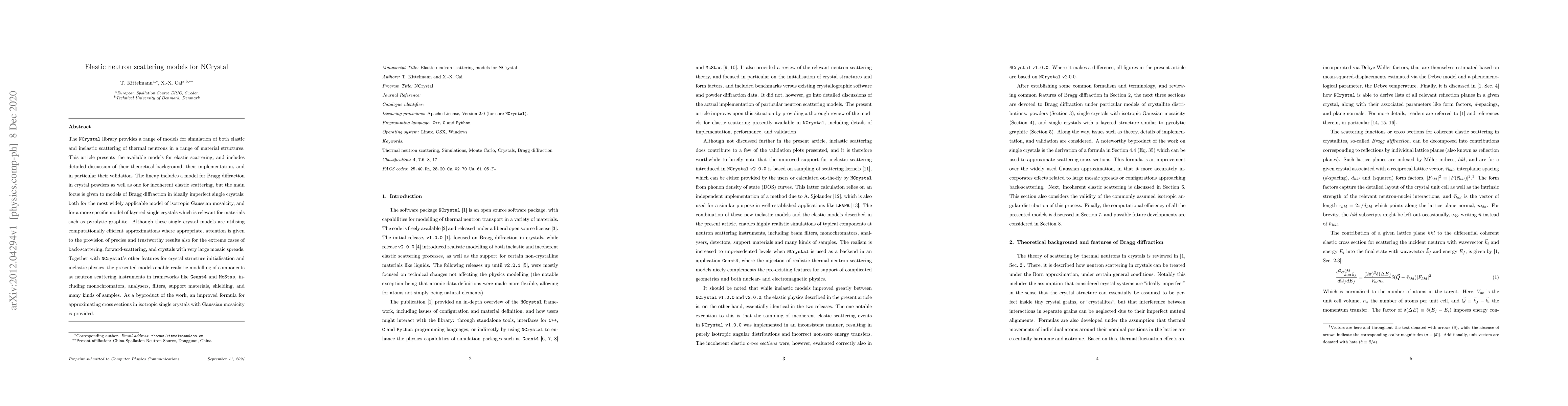This paper details the elastic neutron scattering models in the NCrystal library, focusing on Bragg diffraction in crystal powders and imperfect single crystals, with an emphasis on isotropic Gaussian mosaicity and layered single crystals. It discusses the theoretical basis, implementation, and validation of these models, ensuring precise results even for challenging cases.