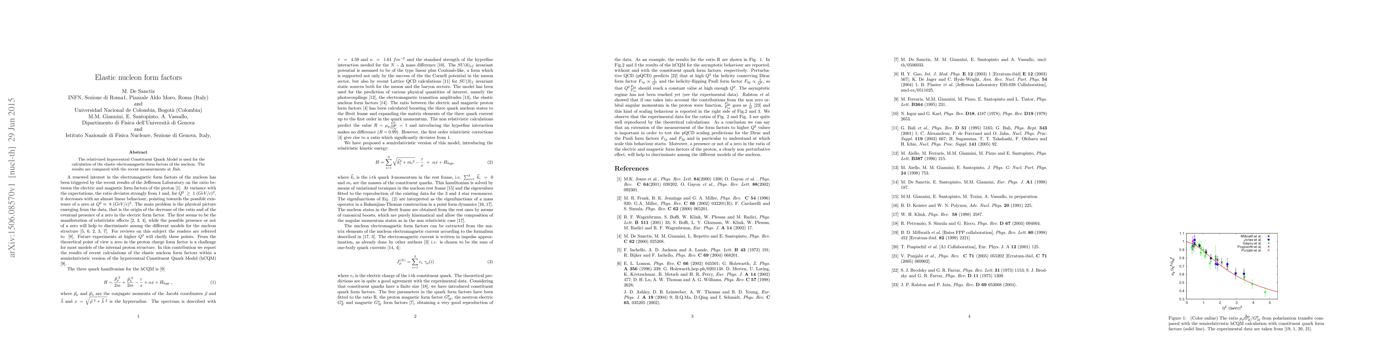 Summary: This paper uses the relativized hypercentral Constituent Quark Model to calculate the elastic electromagnetic form factors of the nucleon and compares these results with recent experimental measurements from JLab. The study aims to provide insights into the internal structure of the nucleon.