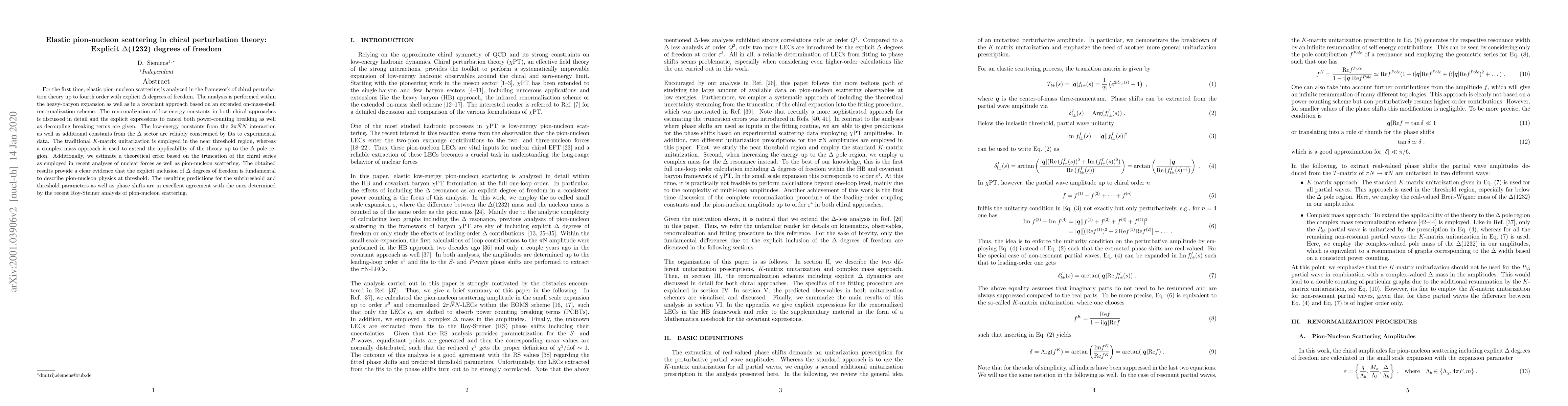 This paper analyzes elastic pion-nucleon scattering in chiral perturbation theory up to fourth order, incorporating explicit $\Delta$ degrees of freedom. It employs both heavy-baryon and covariant approaches, providing detailed renormalization of low-energy constants and demonstrating the necessity of $\Delta$ inclusion for accurate pion-nucleon physics descriptions.