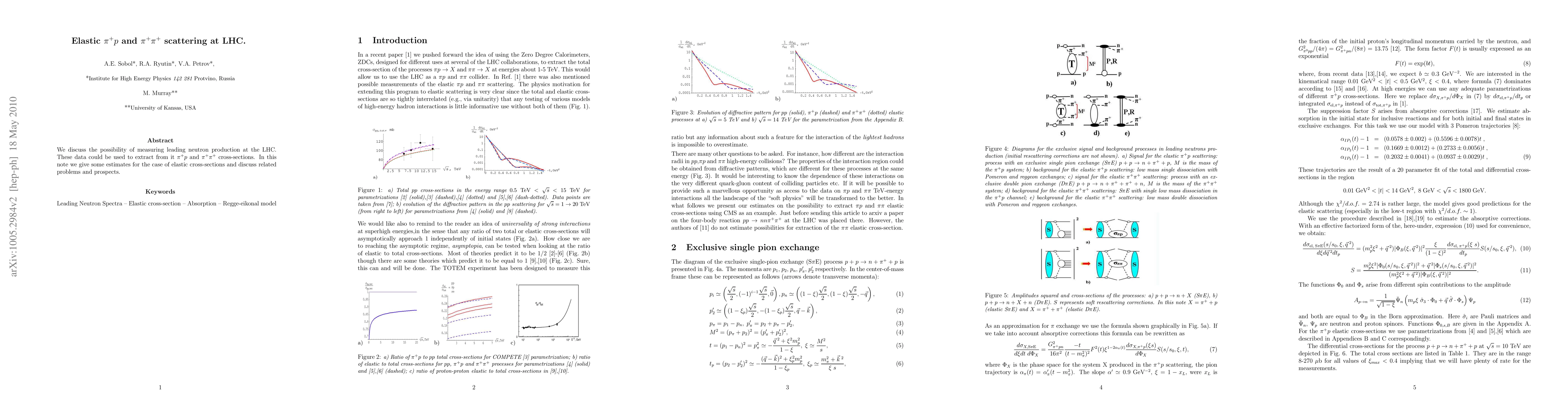 This paper explores the potential of measuring leading neutron production at the LHC to extract $\pi^+ p$ and $\pi^+\pi^+$ elastic scattering cross-sections, providing estimates for these elastic cross-sections and discussing related challenges and future prospects.