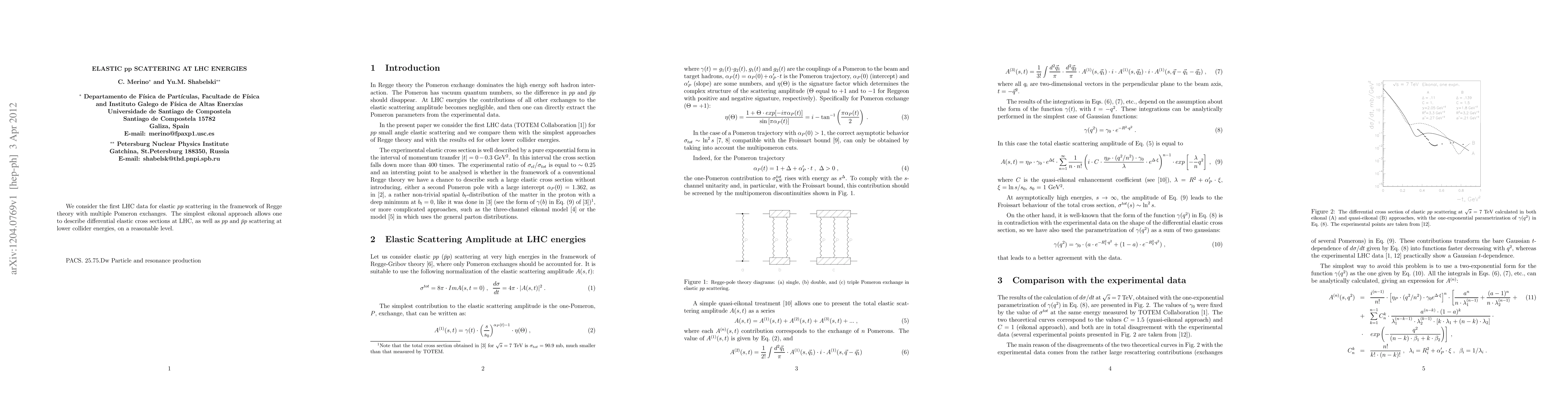 Summary: This paper analyzes the first LHC data for elastic proton-proton scattering using Regge theory and multiple Pomeron exchanges, demonstrating that the simplest eikonal approach can reasonably describe differential elastic cross sections at LHC and lower collider energies.