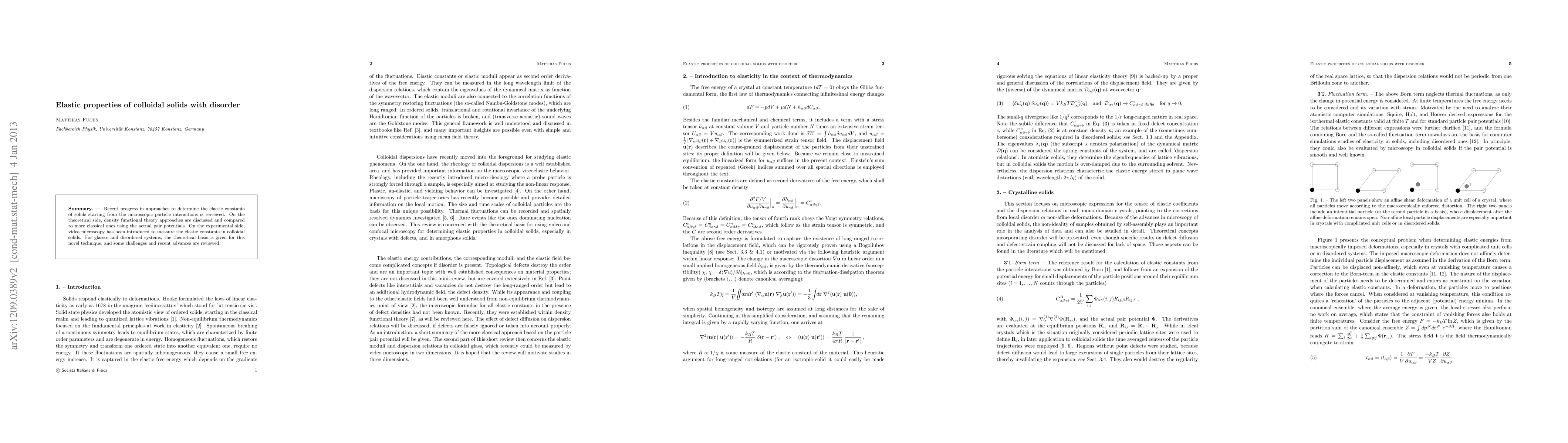 Researchers review progress in determining elastic constants of colloidal solids using density functional theory and video microscopy, which allows for the measurement of elastic properties in disordered systems.
