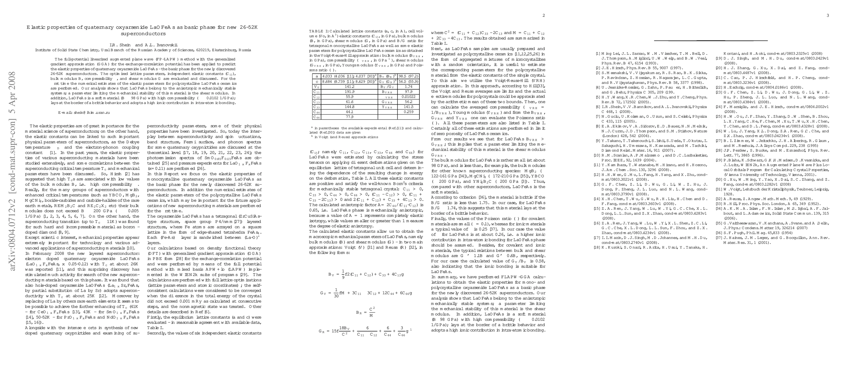 This study uses the FP-LAPW method with GGA to predict the elastic properties of LaOFeAs, a foundational phase for new 26-52K superconductors. The analysis reveals LaOFeAs as an anisotropic, mechanically stable material with a low bulk modulus and high compressibility, indicating its soft nature and borderline brittle behavior.