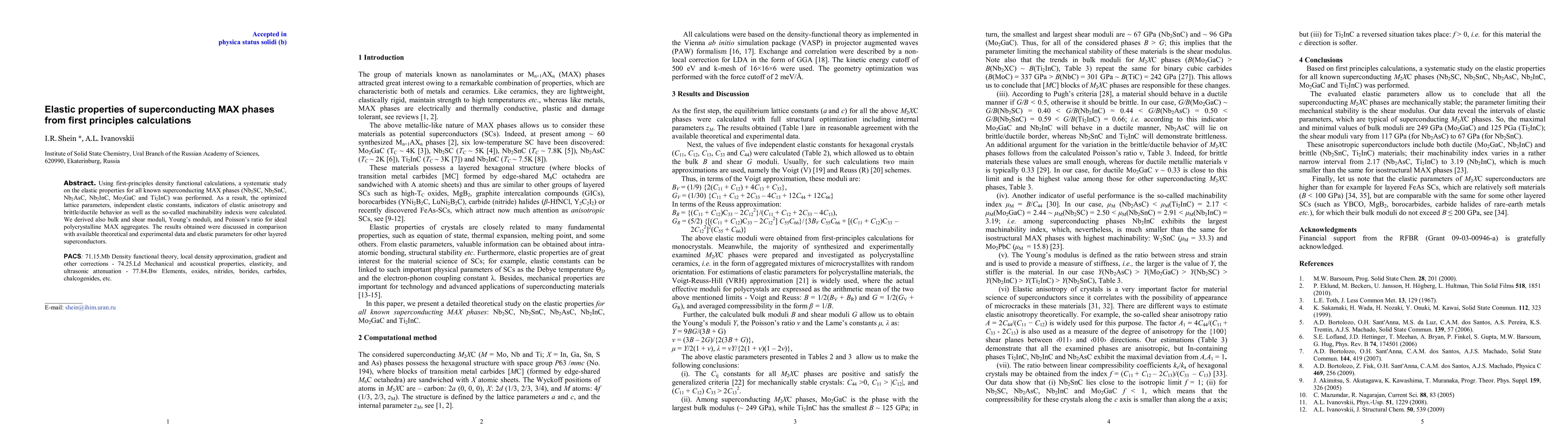 This study uses first-principles density functional calculations to determine the elastic properties of superconducting MAX phases, including lattice parameters, elastic constants, and moduli. The findings are compared with existing theoretical and experimental data, providing insights into the material's mechanical behavior and machinability.