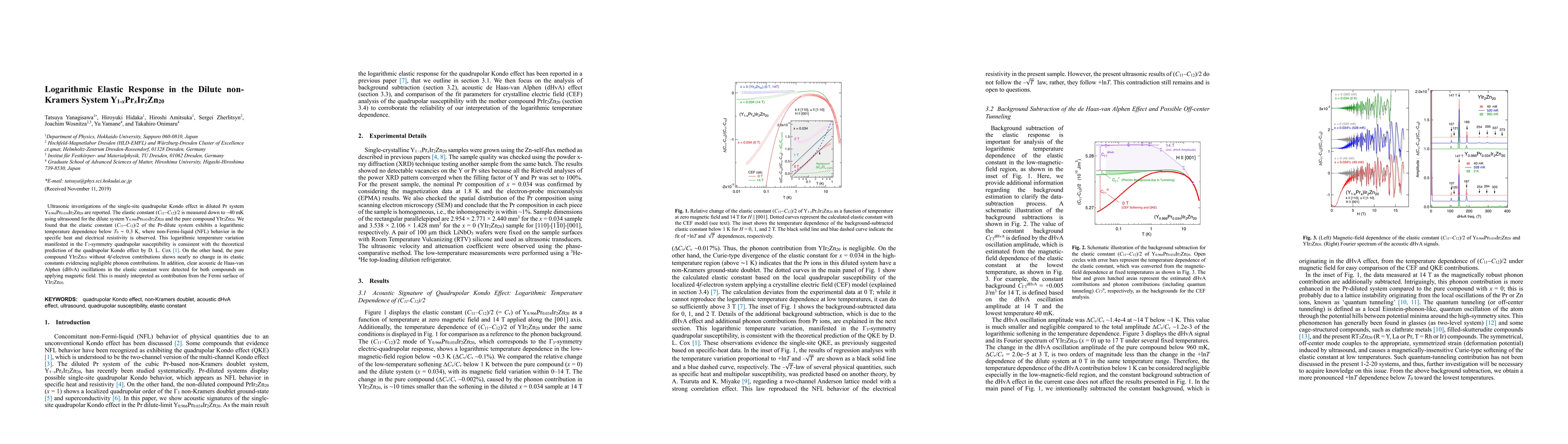 This study investigates the elastic response in the dilute Pr system Y$_{0.966}$Pr$_{0.034}$Ir$_2$Zn$_{20}$, revealing a logarithmic temperature dependence in the elastic constant $(C_{11}-C_{12})/2$ below 0.3 K, indicative of the quadrupolar Kondo effect. In contrast, the pure YIr$_2$Zn$_{20}$ compound shows negligible elastic constant changes, highlighting minimal phonon contributions.