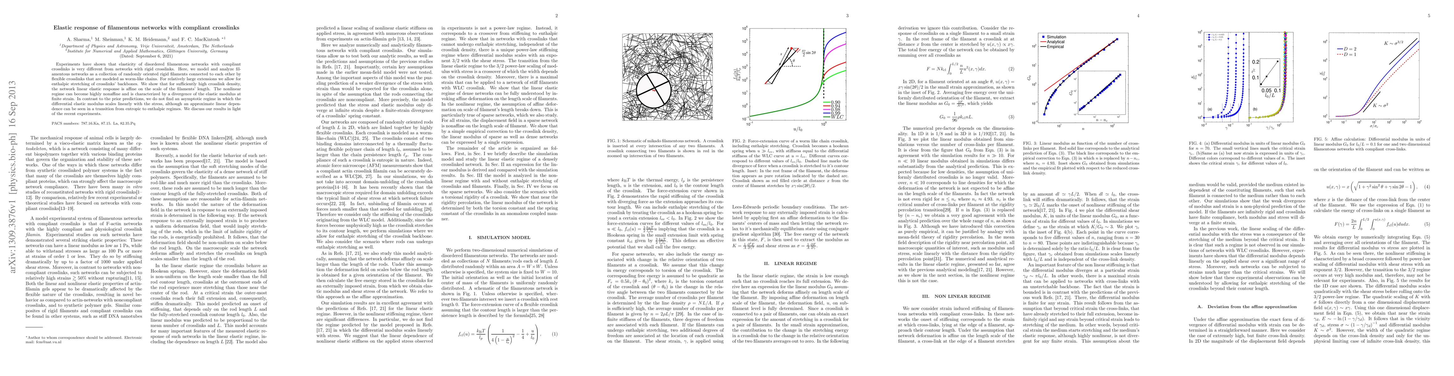 This paper models disordered filamentous networks with flexible crosslinks and demonstrates that their elastic response is affine at high crosslink densities for large extensions. Contrary to prior predictions, the nonlinear regime shows a divergence of the elastic modulus without an asymptotic linear scaling with stress, highlighting the transition from entropic to enthalpic regimes.