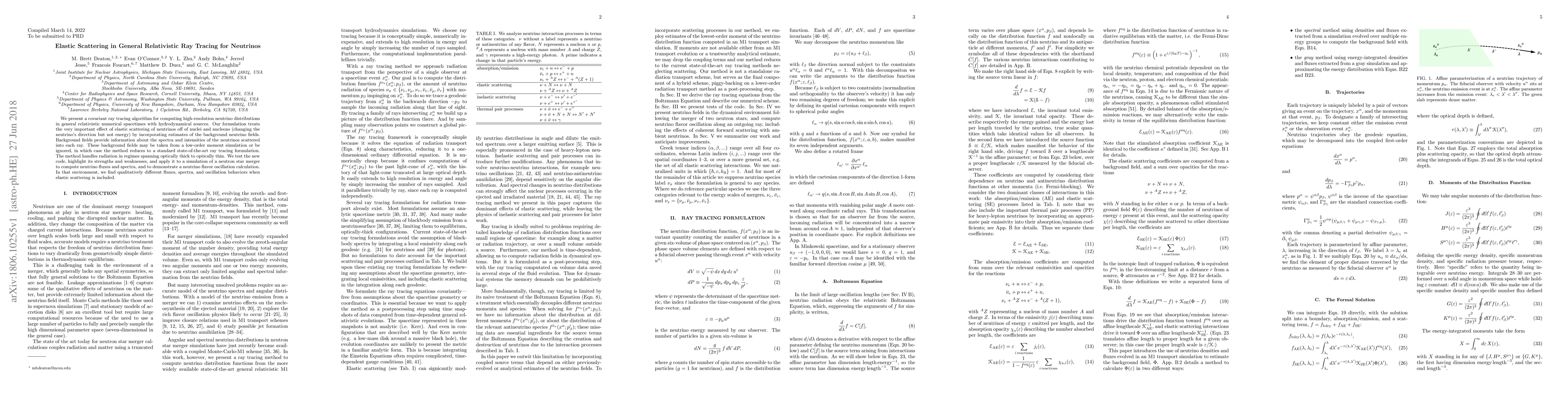 This paper introduces a covariant ray tracing algorithm for high-resolution neutrino distributions in general relativistic spacetimes, incorporating elastic scattering effects. The method computes neutrino fluxes and spectra in neutron star mergers, revealing significant differences in results when elastic scattering is included.
