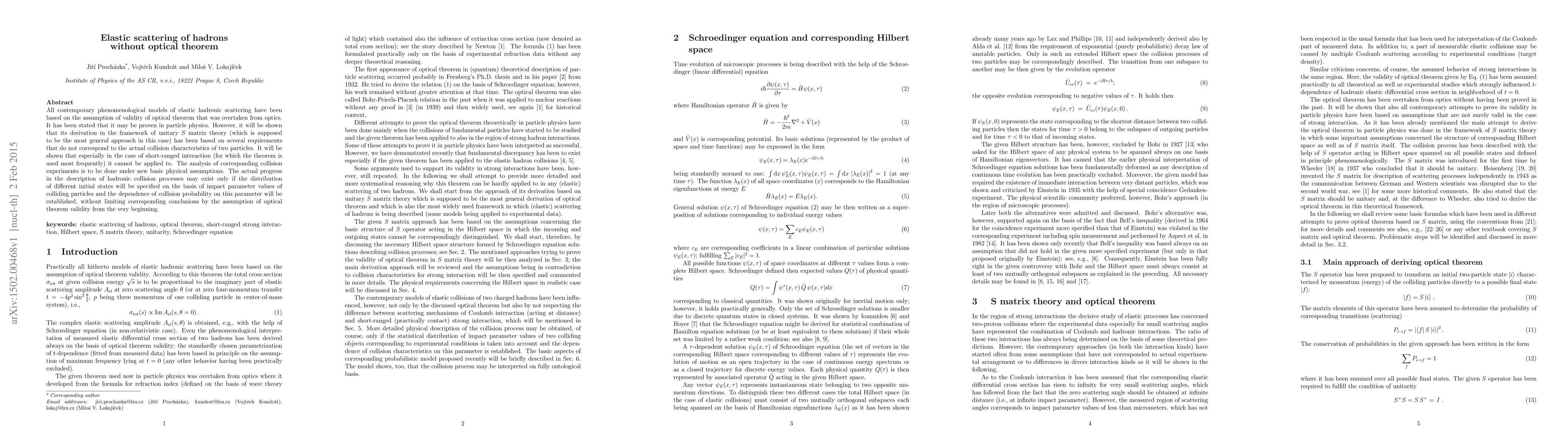All contemporary phenomenological models of elastic hadronic scattering have been based on the assumption of validity of optical theorem that was overtaken from optics. It has been stated that it may be proven in particle physics. However, it will be shown that its derivation in the framework of unitary S-matrix theory (which is supposed to be the most general approach in this case) has been based on several requirements that do not correspond to the actual collision characteristics of two particles. It will be shown that especially in the case of short-ranged interaction (for which the theorem is used most frequently) it cannot be applied to. The analysis of corresponding collision experiments is to be done under new basic physical assumptions. The actual progress in the description of hadronic collision processes may exist only if the distribution of different initial states will be specified on the basis of impact parameter values of colliding particles and the dependence of collision probability on this parameter will be established, without limiting corresponding conclusions by the assumption of optical theorem validity from the very beginning.