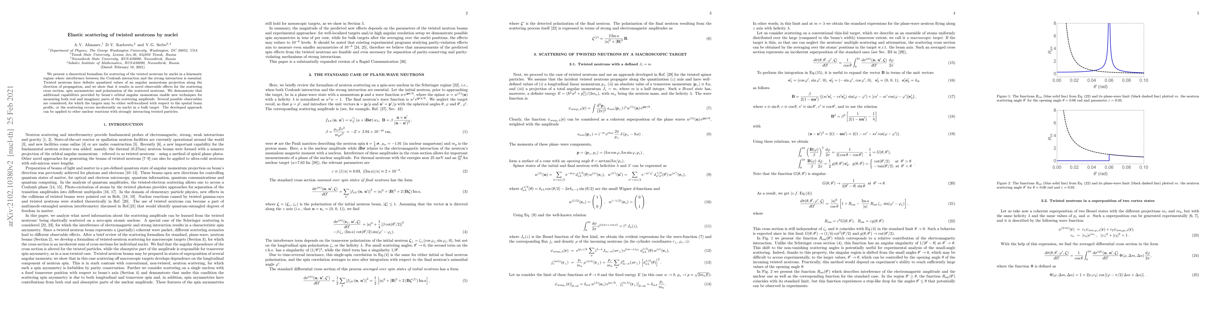 This research introduces a theoretical framework for understanding how twisted neutrons, having quantized angular momentum, interact with nuclei. It highlights novel effects on scattering cross sections, spin asymmetries, and neutron polarization, enabling new measurement techniques for scattering amplitudes' real and imaginary parts. The approach is applicable to other nuclear reactions involving strongly interacting twisted particles.