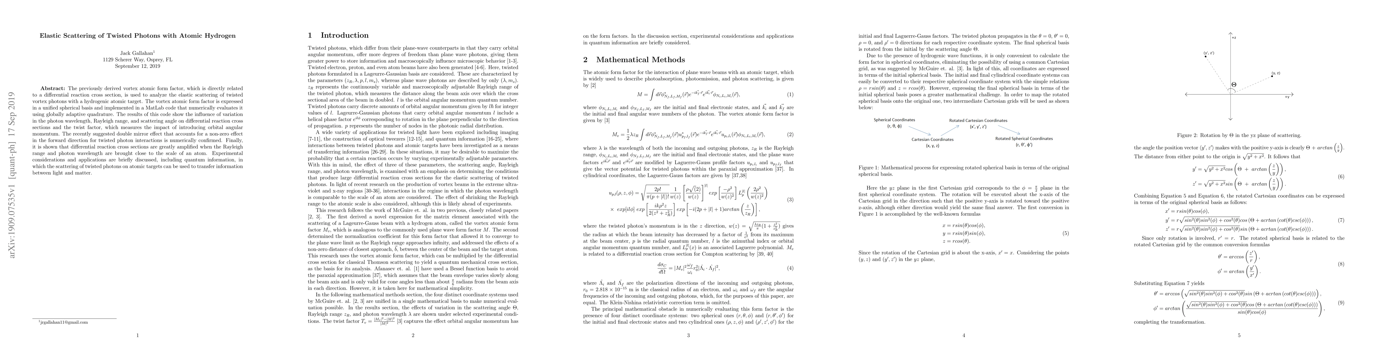 This paper analyzes the elastic scattering of twisted vortex photons with hydrogenic atoms, using a vortex atomic form factor expressed in a spherical basis and evaluated with a MatLab code. The study confirms the double mirror effect and shows that differential reaction cross sections are significantly amplified when photon wavelength and Rayleigh range approach atomic scales, with implications for quantum information transfer.