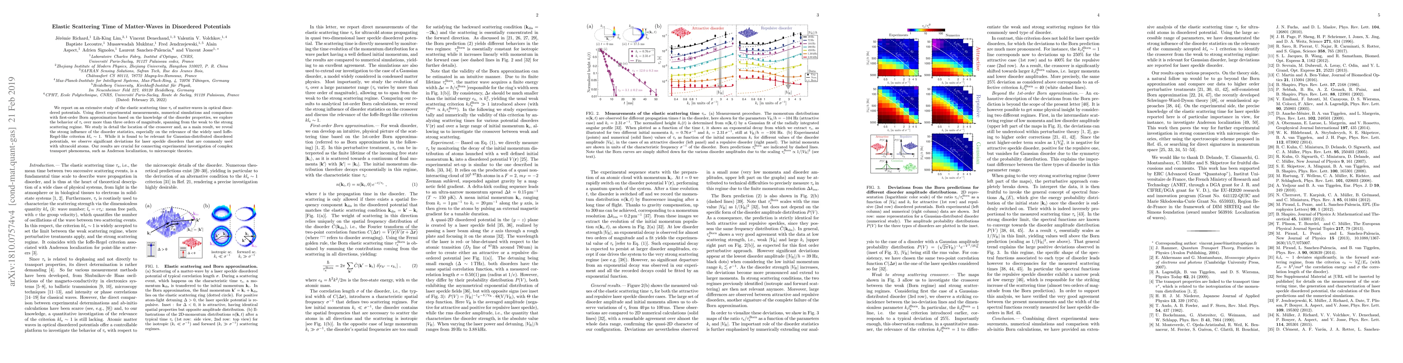The research methodology involves direct experimental measurements, numerical simulations, and comparison with first-order Born approximation calculations to study the elastic scattering time ($\tau_S$) of matter-waves in optical disordered potentials. The study spans three orders of magnitude, from weak to strong scattering regimes, using Gaussian-distributed and laser speckle disorders.