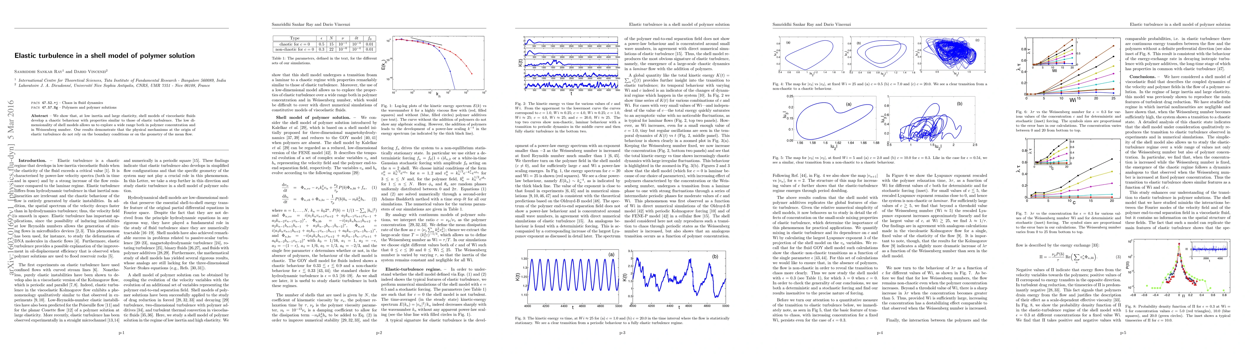 This paper demonstrates that shell models of viscoelastic fluids exhibit elastic turbulence at low inertia and high elasticity, revealing chaotic behavior akin to elastic turbulence. The study highlights that the underlying mechanisms of elastic turbulence are independent of boundary conditions and flow geometry.
