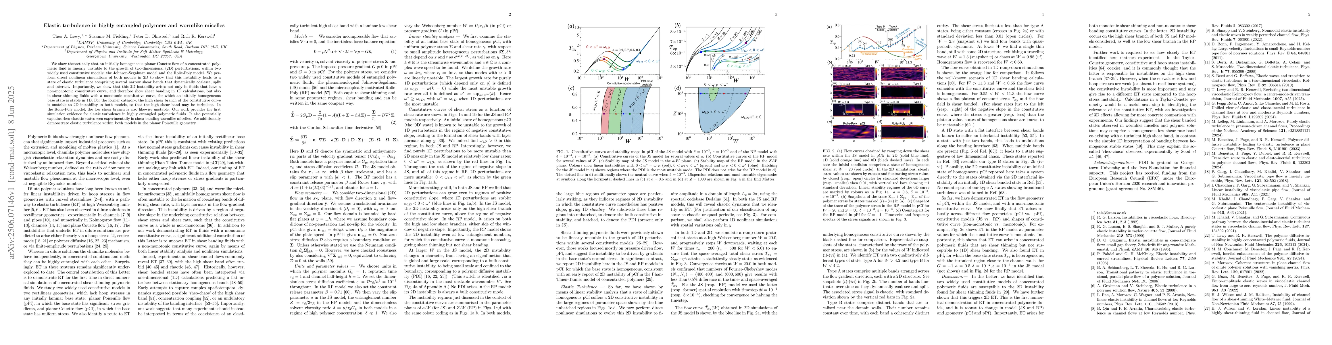 Researchers discovered that highly entangled polymers can exhibit elastic turbulence, characterized by narrow shear bands that coalesce and interact, even in fluids with monotonic constitutive curves. This finding has implications for understanding rheo-chaotic states observed in shear banding wormlike micelles.
