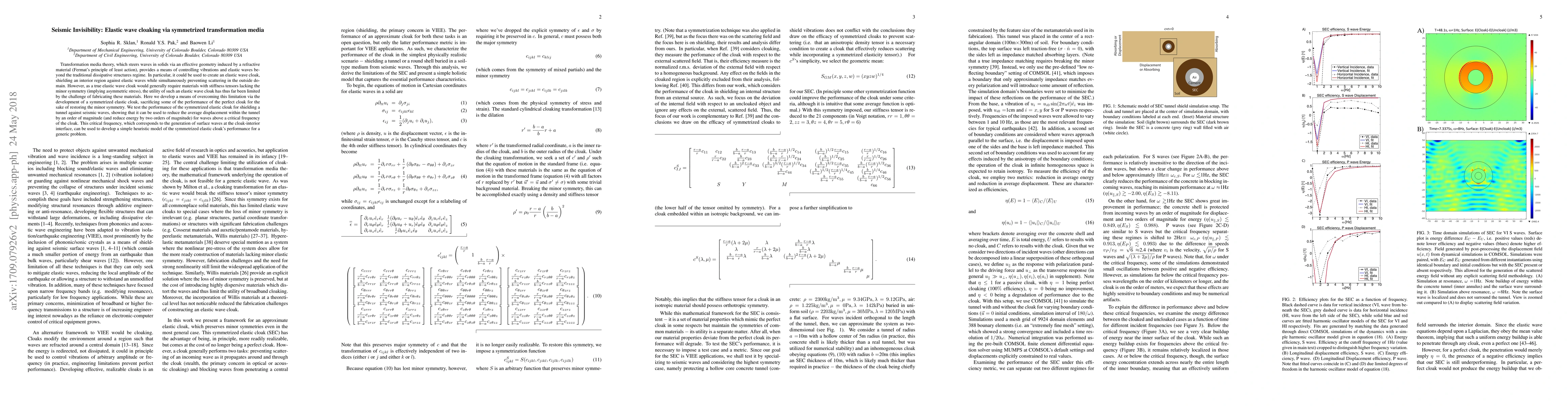 Transformation media theory, which steers waves in solids via an effective geometry induced by a refractive material (Fermat's principle of least action), provides a means of controlling vibrations and elastic waves beyond the traditional dissipative structures regime. In particular, it could be used to create an elastic wave cloak, shielding an interior region against elastic waves while simultaneously preventing scattering in the outside domain. However, as a true elastic wave cloak would generally require nonphysical materials with stiffness tensors lacking the minor symmetry (implying asymmetric stress), the utility of such an elastic wave cloak has thus far been limited. Here we develop a means of overcoming this limitation via the development of a symmetrized elastic cloak, sacrificing some of the performance of the perfect cloak for the sake of restoring the minor symmetry. We test the performance of the symmetrized elastic cloak for shielding a tunnel against seismic waves, showing that it can be used to reduce the average displacement within the tunnel by an order of magnitude (and reduce energy by two orders of magnitude) for waves above a critical frequency of the cloak. This critical frequency, which corresponds to the generation of surface waves at the cloak-interior interface, can be used to develop a simple heuristic model of the symmetrized elastic cloak's performance for a generic problem.