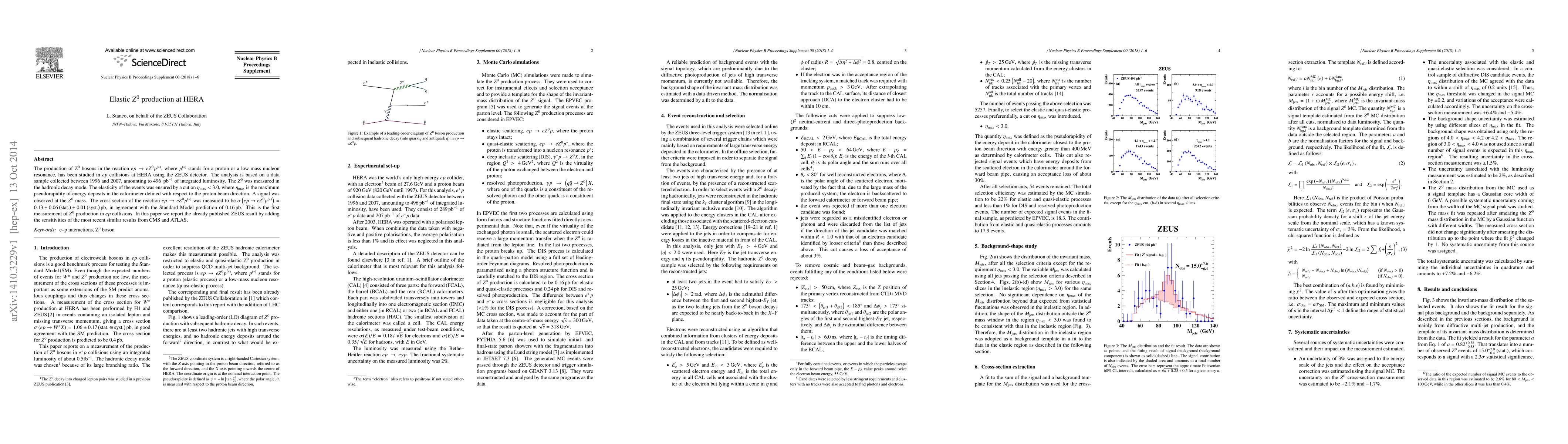 The production of $Z^{0}$ bosons in the reaction $eparrow eZ^{0}p^{(*)}$, where $p^{(*)}$ stands for a proton or a low-mass nucleon resonance, has been studied in $ep$ collisions at HERA using the ZEUS detector. The analysis is based on a data sample collected between 1996 and 2007, amounting to 496\, pb$^{-1}$ of integrated luminosity. The $Z^{0}$ was measured in the hadronic decay mode. The elasticity of the events was ensured by a cut on $\eta_{{\rm max}} < 3.0$, where $\eta_{{\rm max}}$ is the maximum pseudorapidity of energy deposits in the calorimeter defined with respect to the proton beam direction. A signal was observed at the $Z^{0}$ mass. The cross section of the reaction $ep arrow eZ^{0}p^{(*)}$ was measured to be $\sigma (ep arrow eZ^{0}p^{(*)}) = {\rm 0.13 \pm{0.06} ({\rm stat.}) \pm{0.01} ({\rm syst.})}\, {\rm pb}$, in agreement with the Standard Model prediction of $0.16\, {\rm pb}$. This is the first measurement of $Z^{0}$ production in $ep$ collisions. In this paper we report the already published ZEUS result by adding the sensitivities of the most recent similar results from CMS and ATLAS.