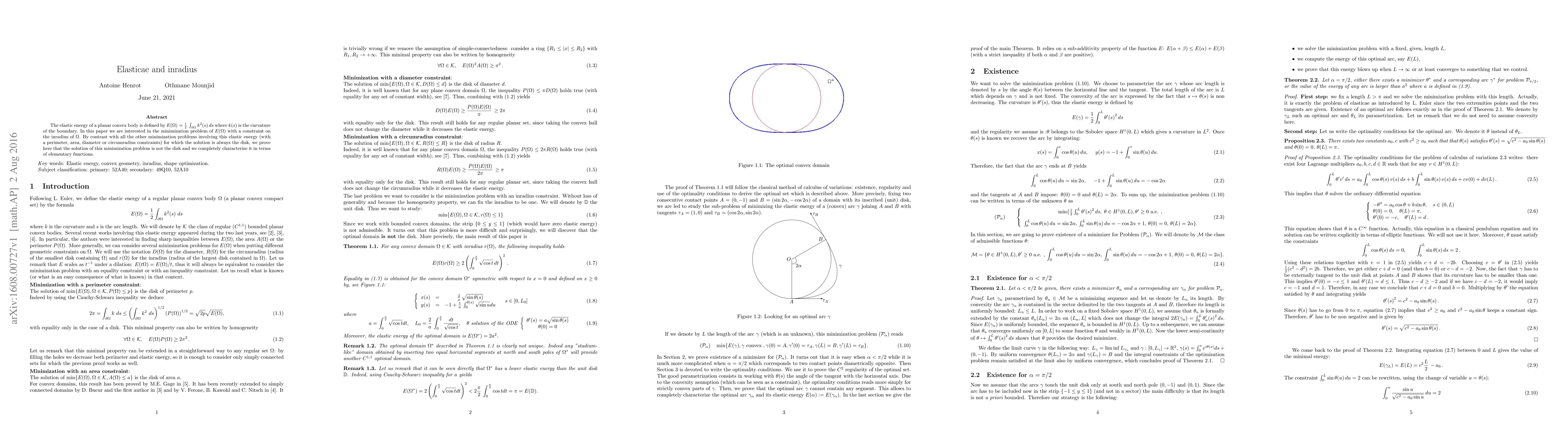 This paper explores the minimization of elastic energy in planar convex bodies with constraints on inradius. Contrary to other problems with perimeter, area, diameter, or circumradius constraints where the optimal shape is always a disk, this study reveals that the optimal shape under inradius constraint is not a disk. The paper provides a complete characterization of this optimal shape using elementary functions.