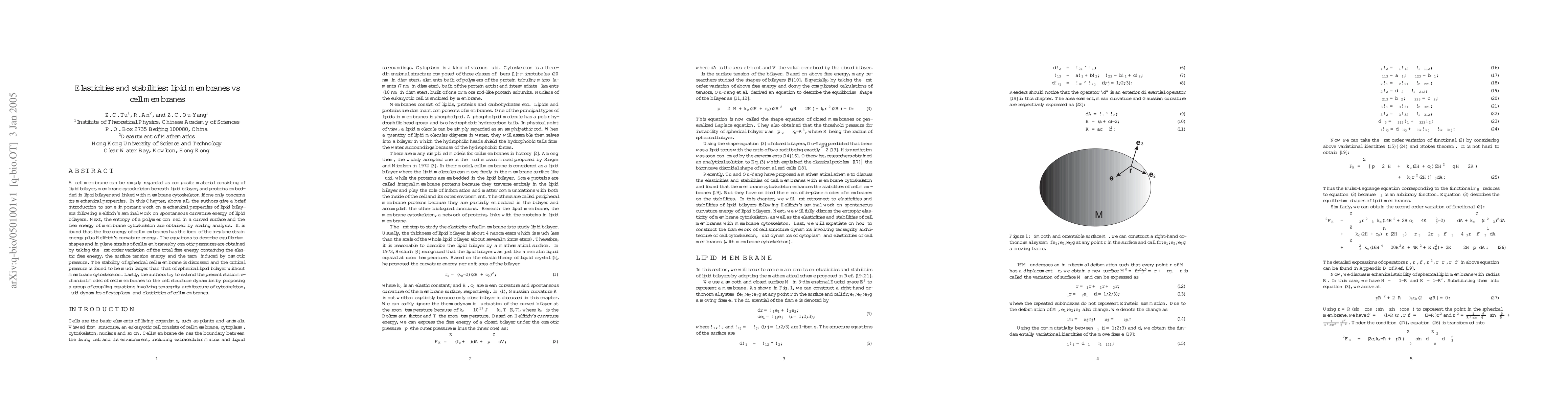 The paper presents a comprehensive analysis of cell membrane mechanics, incorporating lipid bilayers, membrane cytoskeletons, and embedded proteins, and extends the static model to include cell structure dynamics.