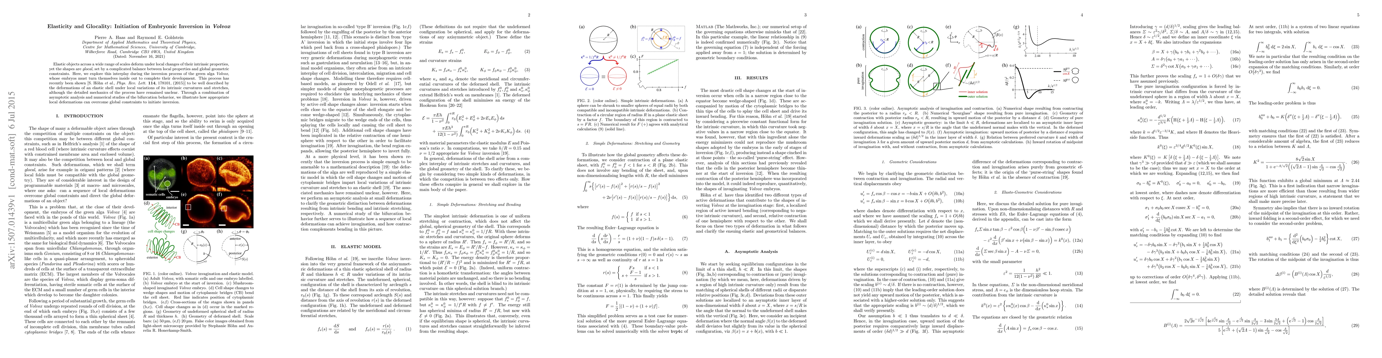 This paper investigates the interplay between local deformations and global geometric constraints during the embryonic inversion process in the green alga Volvox, demonstrating how local changes in intrinsic properties drive the inside-out transformation. The study combines asymptotic analysis and numerical simulations to elucidate the mechanics behind this complex glocal deformation.