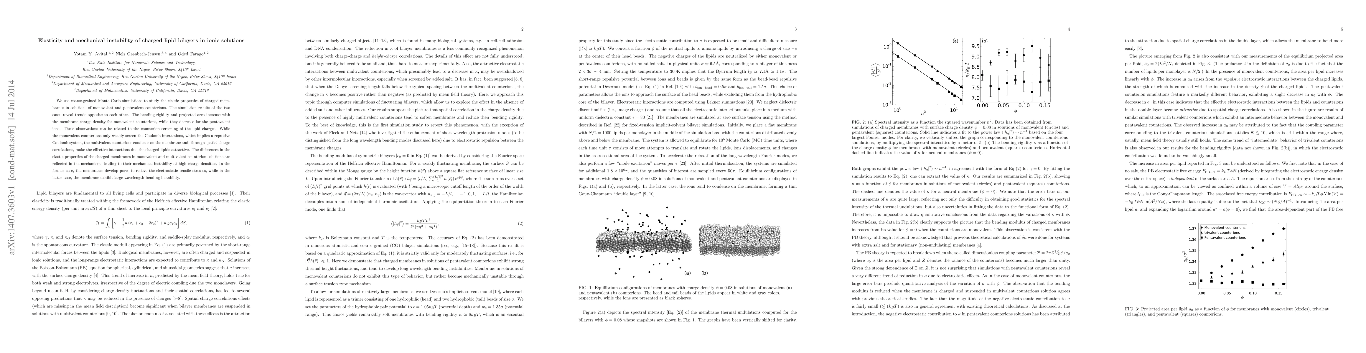 We use coarse-grained Monte Carlo simulations to study the elastic properties of charged membranes in solutions of monovalent and pentavalent counterions. The simulation results of the two cases reveal trends opposite to each other. The bending rigidity and projected area increase with the membrane charge density for monovalent counterions, while they decrease for the pentavalent ions. These observations can be related to the counterion screening of the lipid charges. While the monovalent counterions only weakly screen the Coulomb interactions, which implies a repulsive Coulomb system, the multivalent counterions condense on the membrane and, through spatial charge correlations, make the effective interactions due the charged lipids attractive. The differences in the elastic properties of the charged membranes in monovalent and multivalent counterion solutions are reflected in the mechanisms leading to their mechanical instability at high charge densities. In the former case, the membranes develop pores to relieve the electrostatic tensile stresses, while in the latter case, the membrane exhibit large wavelength bending instability.