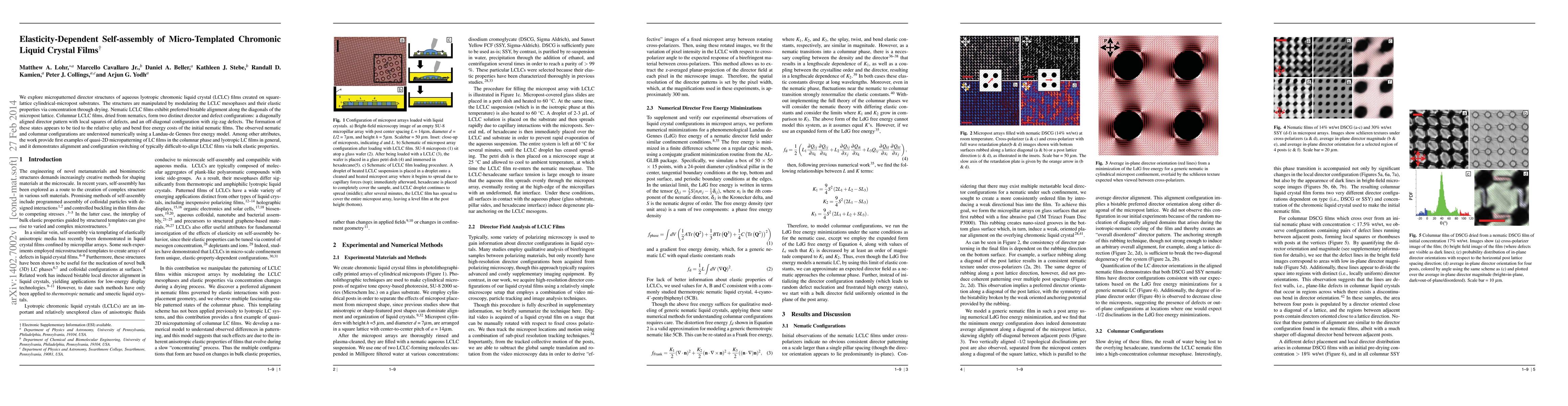 This paper investigates the self-assembly of micropatterned director structures in aqueous lyotropic chromonic liquid crystal films on cylindrical-micropost substrates, revealing bistable alignment and distinct director configurations influenced by elastic properties. Numerical modeling using a Landau-de Gennes free energy model explains the formation of these configurations.