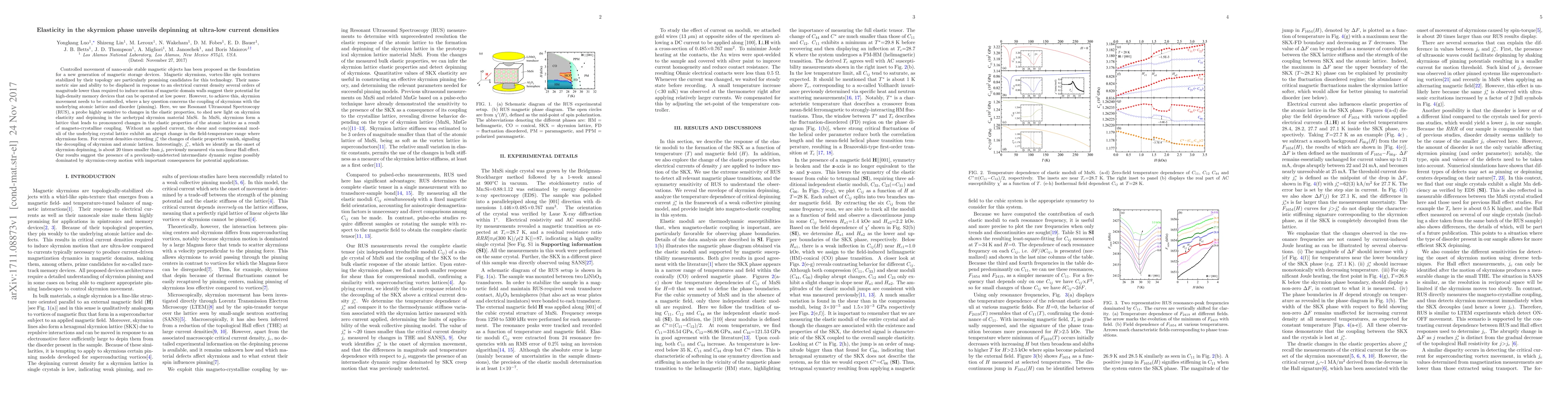 Controlled movement of nano-scale stable magnetic objects has been proposed as the foundation for a new generation of magnetic storage devices. Magnetic skyrmions, vortex-like spin textures stabilized by their topology are particularly promising candidates for this technology. Their nanometric size and ability to be displaced in response to an electrical current density several orders of magnitude lower than required to induce motion of magnetic domain walls suggest their potential for high-density memory devices that can be operated at low power. However, to achieve this, skyrmion movement needs to be controlled, where a key question concerns the coupling of skyrmions with the underlying atomic lattice and disorder (pinning). Here, we use Resonant Ultrasound Spectroscopy (RUS), a probe highly sensitive to changes in the elastic properties, to shed new light on skyrmion elasticity and depinning in the archetypal skyrmion material MnSi. In MnSi, skyrmions form a lattice that leads to pronounced changes in the elastic properties of the atomic lattice as a result of magneto-crystalline coupling. Without an applied current, the shear and compressional moduli of the underlying crystal lattice exhibit an abrupt change in the field-temperature range where skyrmions form. For current densities exceeding $j_c^*$ the changes of elastic properties vanish, signaling the decoupling of skyrmion and atomic lattices. Interestingly, $j_c^*$, which we identify as the onset of skyrmion depinning, is about 20 times smaller than $j_c$ previously measured via non-linear Hall effect. Our results suggest the presence of a previously-undetected intermediate dynamic regime possibly dominated by skyrmion-creep motion with important consequences for potential applications.