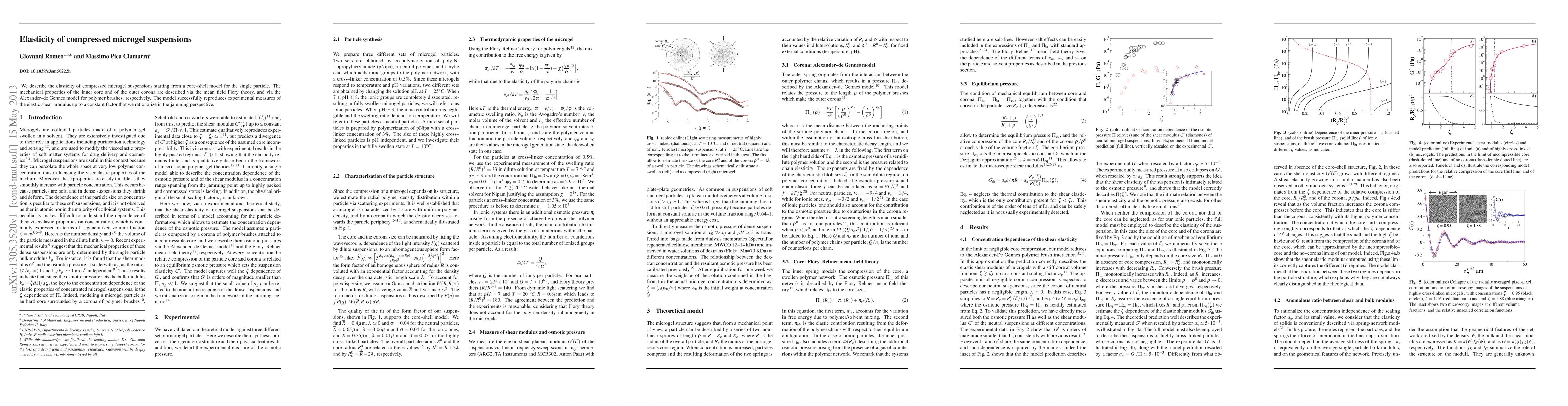 This paper develops a core-shell model to describe the elasticity of compressed microgel suspensions, using mean field Flory theory and the Alexander-de Gennes model for polymer brushes. The model accurately predicts experimental elastic shear modulus measurements, with minor discrepancies rationalized through jamming theory.