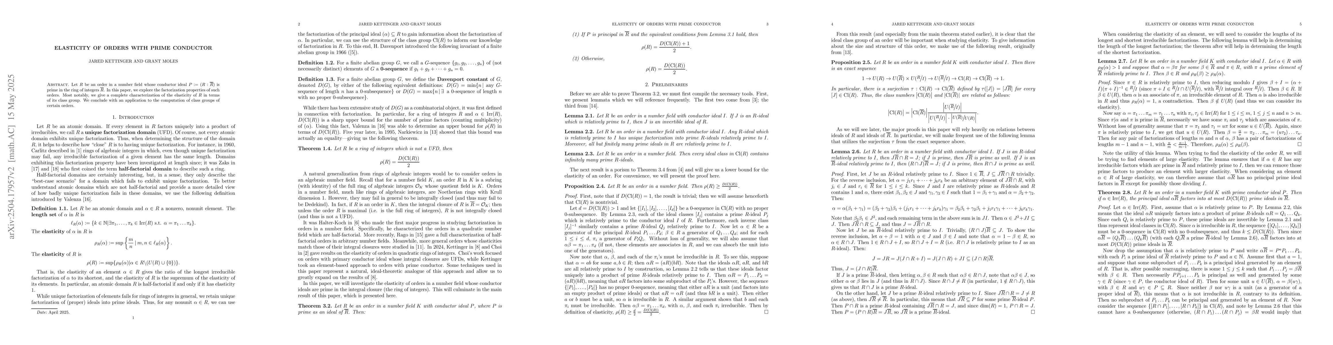 Demonstrated that elasticity of non-Dedekind orders can be characterized by class group Davenport constants under prime conductor assumptions.