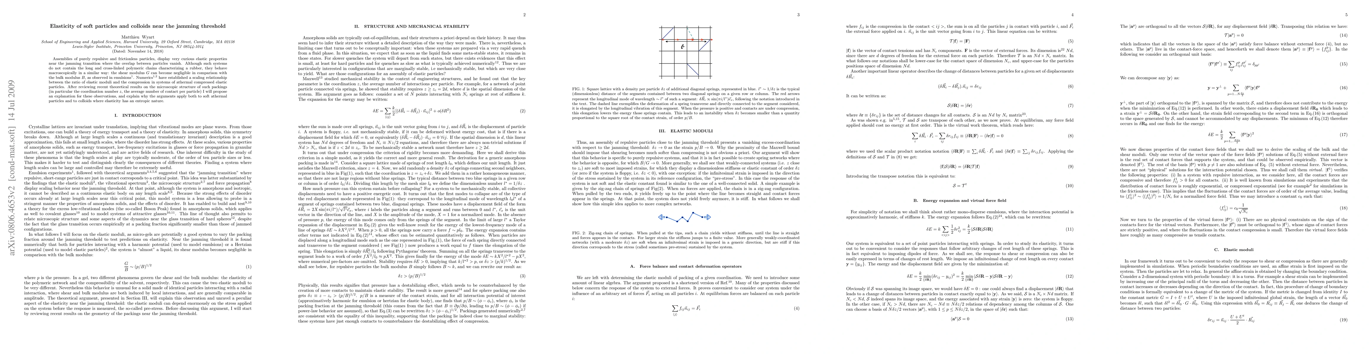 This paper explores the unusual elasticity properties of purely repulsive, frictionless particles near their jamming transition at random close packing, showing that they behave similarly to rubber despite lacking polymeric chains. The author proposes an explanation for the scaling of elastic moduli, demonstrating its applicability to both soft and hard particles.