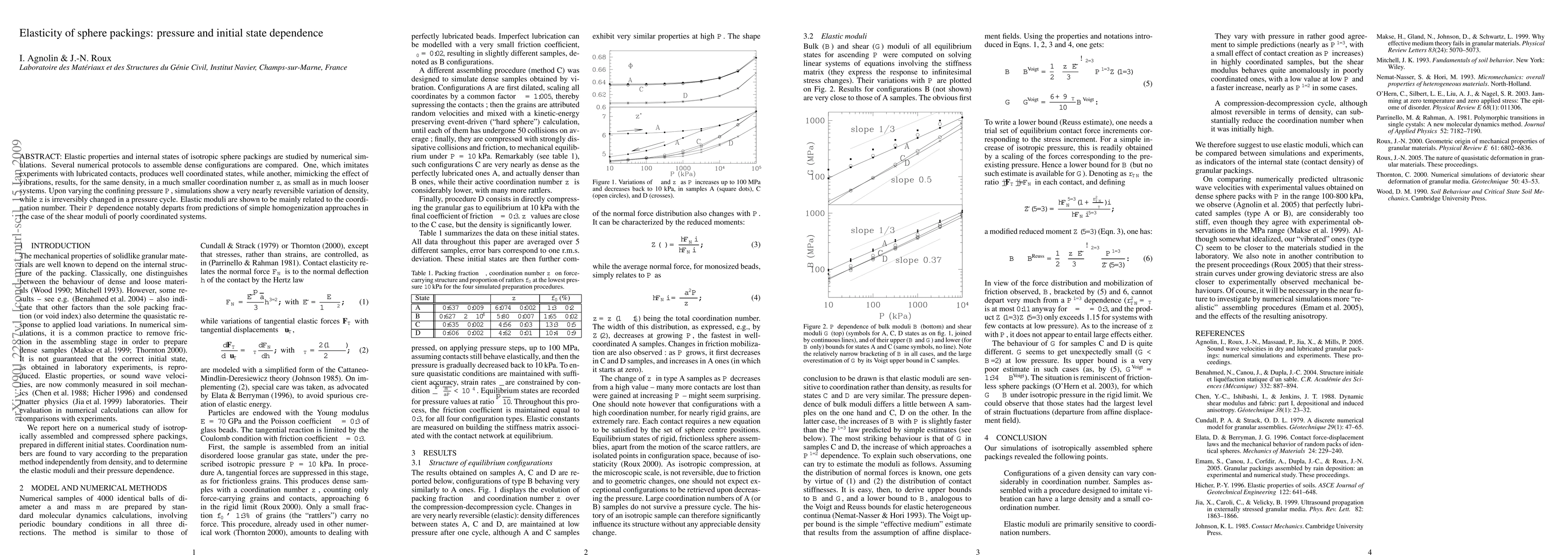Elastic properties and internal states of isotropic sphere packings are studied by numerical simulations. Several numerical protocols to assemble dense configurations are compared. One, which imitates experiments with lubricated contacts, produces well coordinated states, while another, mimicking the effect of vibrations, results, for the same density, in a much smaller coordination number z, as small as in much looser systems. Upon varying the confining pressure P, simulations show a very nearly reversible variation of density, while z is irreversibly changed in a pressure cycle. Elastic moduli are shown to be mainly related to the coordination number. Their P dependence notably departs from predictions of simple homogenization approaches in the case of the shear moduli of poorly coordinated systems.