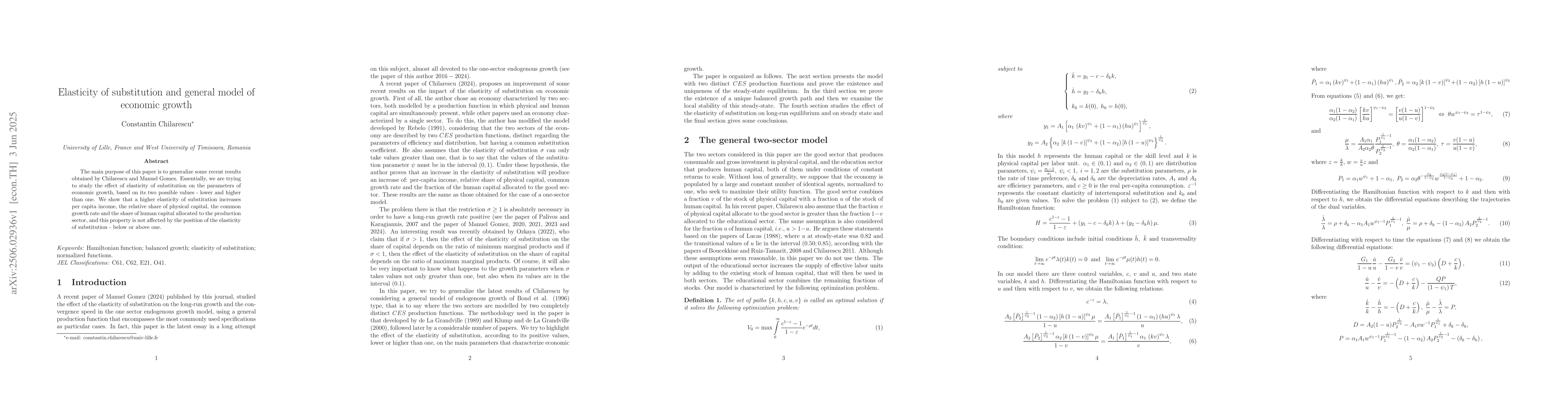 Generalization of results concerning the effect of elasticity of substitution on economic growth parameters.