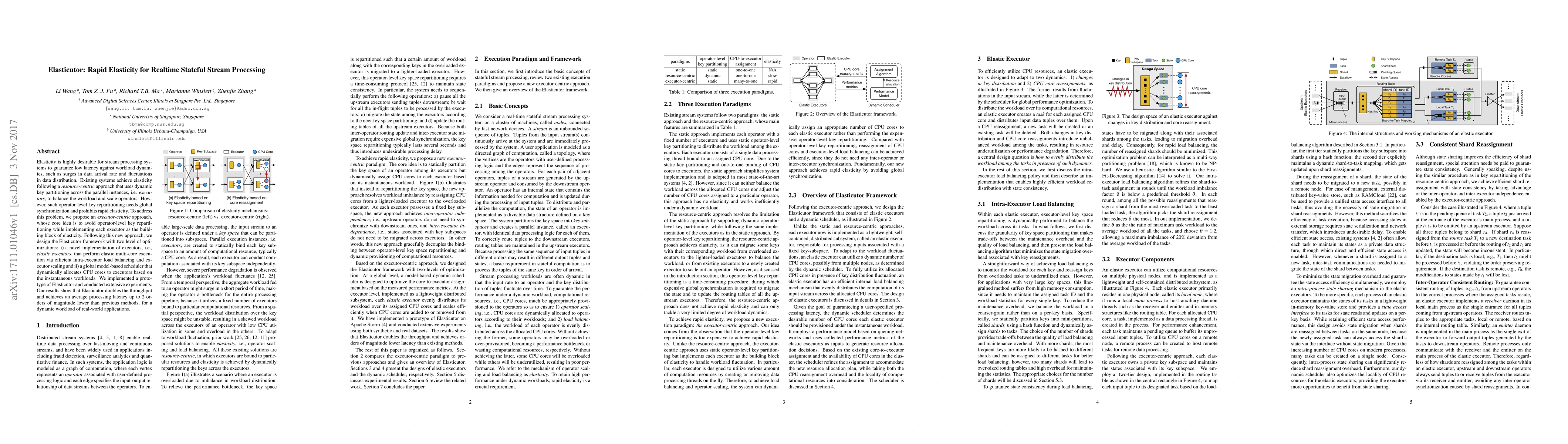 The Elasticutor framework proposes an executor-centric approach to achieve rapid elasticity in realtime stateful stream processing systems, significantly improving throughput and reducing latency compared to resource-centric methods. It employs elastic executors and a global model-based scheduler to optimize intra-executor load balancing and dynamic CPU allocation.