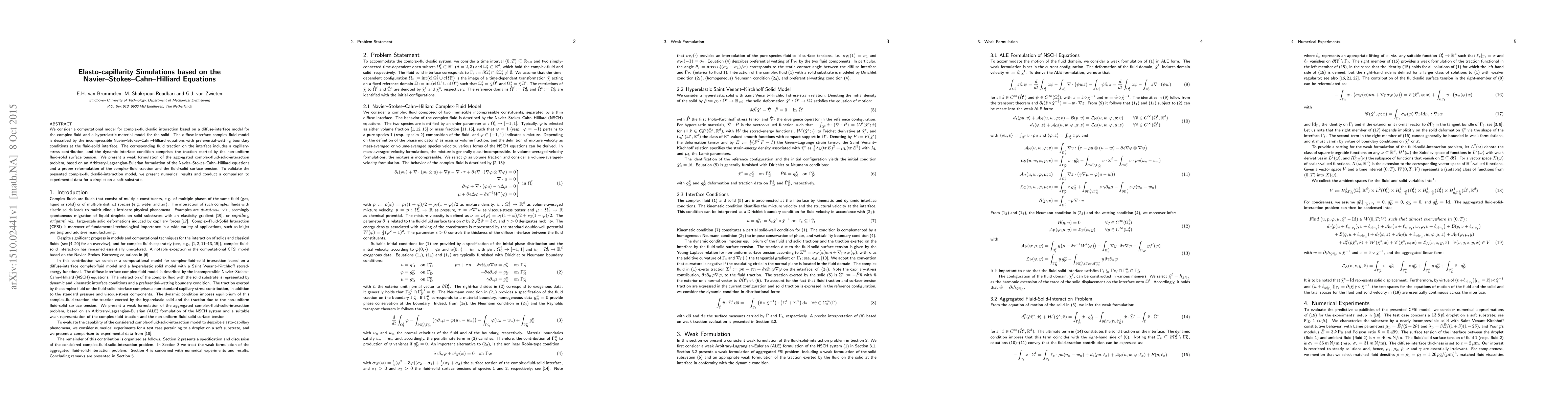 We consider a computational model for complex-fluid-solid interaction based on a diffuse-interface model for the complex fluid and a hyperelastic-material model for the solid. The diffuse-interface complex-fluid model is described by the incompressible Navier-Stokes-Cahn-Hilliard equations with preferential-wetting boundary conditions at the fluid-solid interface. The corresponding fluid traction on the interface includes a capillary-stress contribution, and the dynamic interface condition comprises the traction exerted by the non-uniform fluid-solid surface tension. We present a weak formulation of the aggregated complex-fluid-solid-interaction problem, based on an Arbitrary-Lagrangian-Eulerian formulation of the Navier-Stokes-Cahn-Hilliard equations and a proper reformulation of the complex-fluid traction and the fluid-solid surface tension. To validate the presented complex-fluid-solid-interaction model, we present numerical results and conduct a comparison to experimental data for a droplet on a soft substrate.