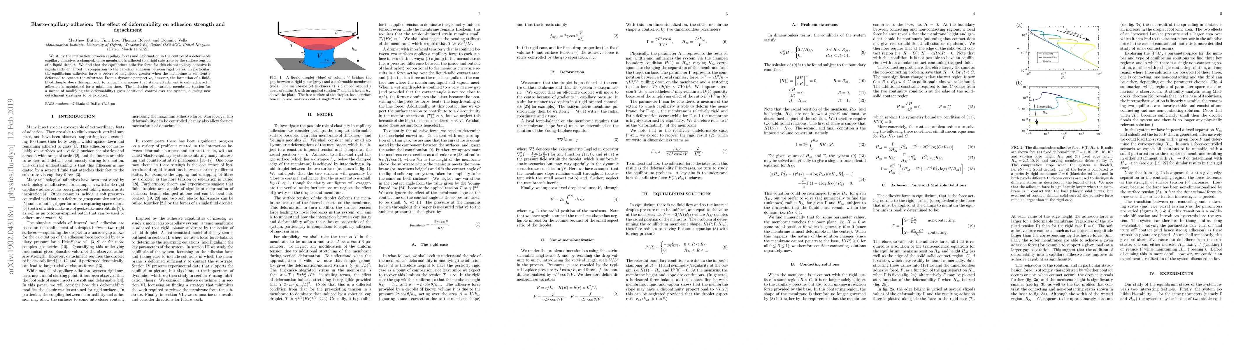 This paper investigates how deformation affects the adhesion strength and detachment in elasto-capillary systems, finding that deformable membranes exhibit significantly enhanced adhesion forces compared to rigid plates. Dynamically, stable attachment requires maintaining adhesion for a minimum time, and variable membrane tension provides additional control for detachment strategies.