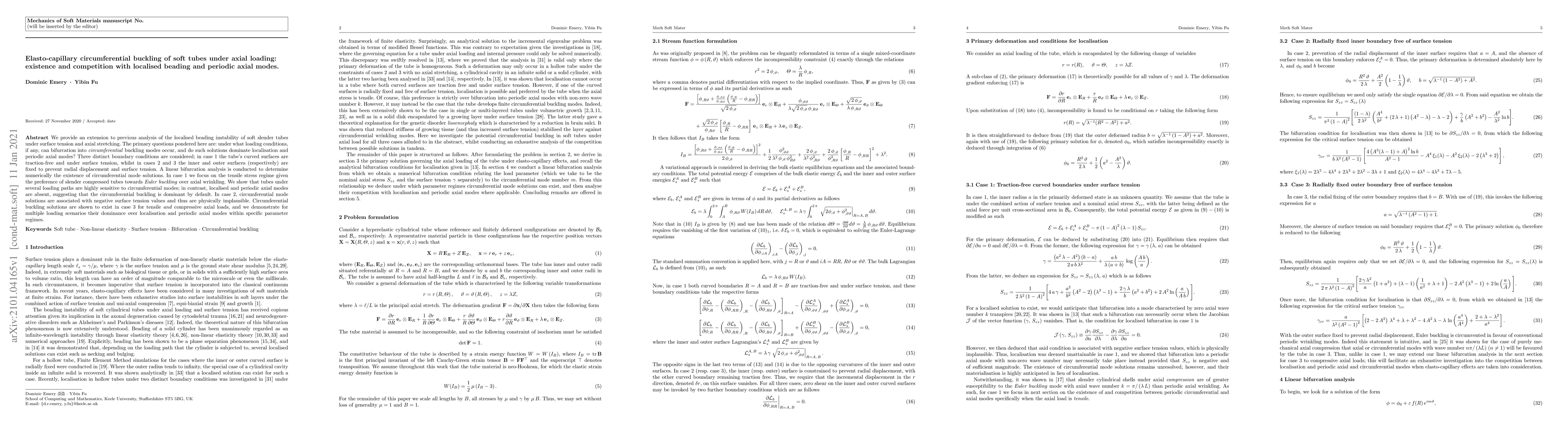 This paper investigates the elasto-capillary circumferential buckling of soft tubes under axial loading, exploring the conditions under which circumferential buckling occurs and competes with localised beading and periodic axial modes. It finds that circumferential buckling dominates in certain loading scenarios, while axial modes are absent or implausible under specific boundary conditions.